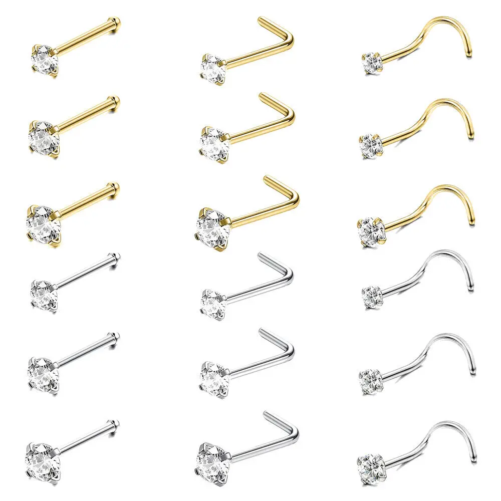Gold Plated L-Shaped Stainless Steel Nose Ring Sexy Body Jewelry Women Men Wedding Fashion Piercing Body Jewelry
