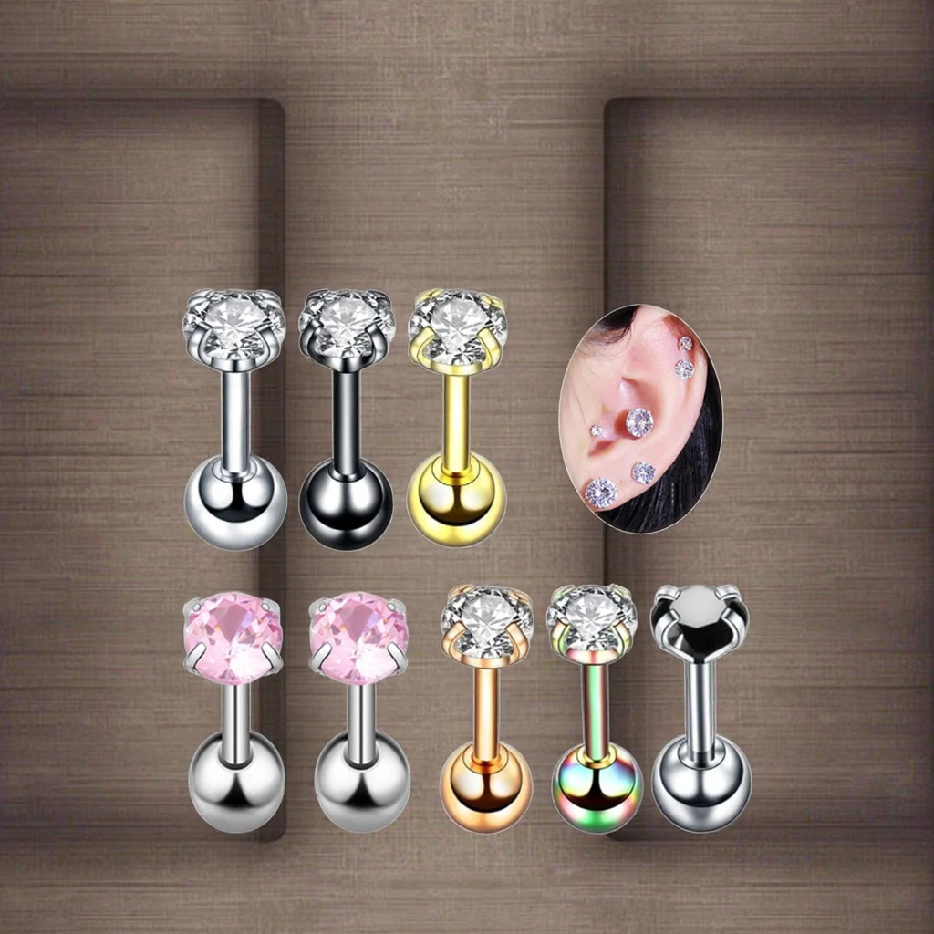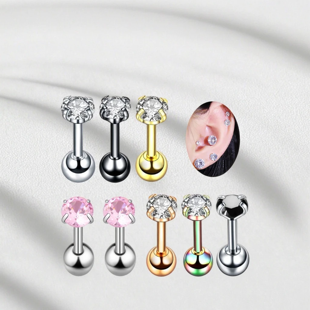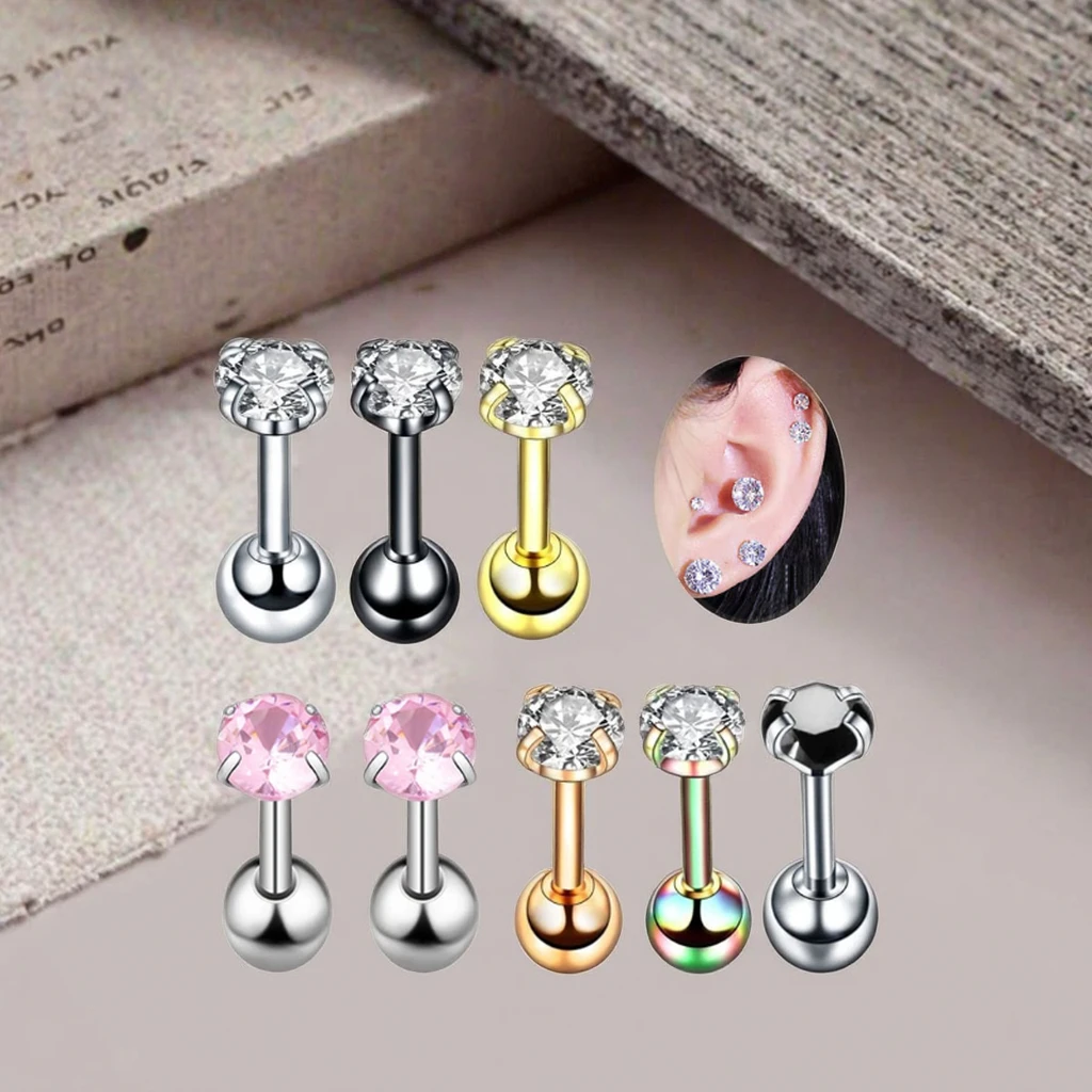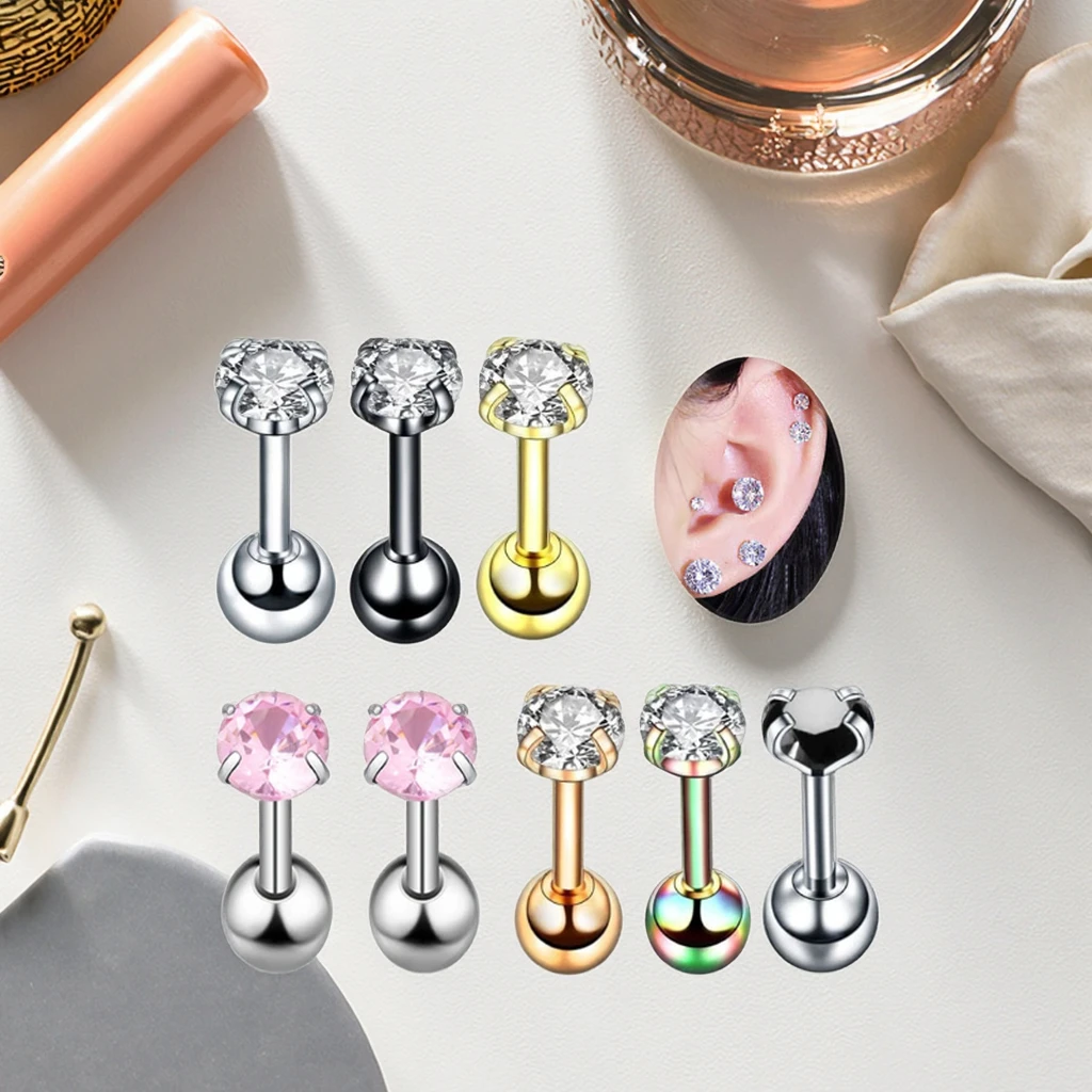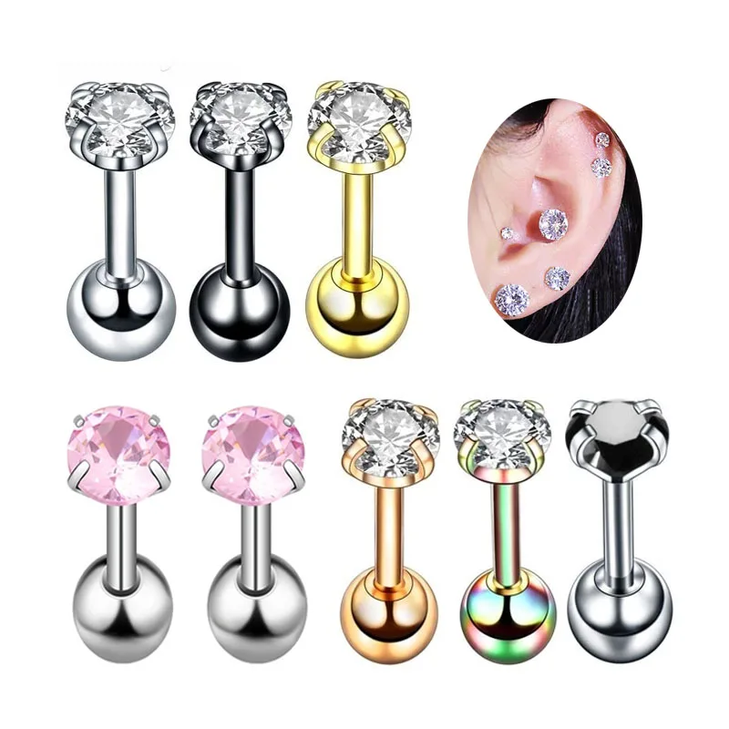 16G Helix Piercing Crystal Ear Stud Rings Stainless Steel Cartilage Tragus Piercing Jewelry Fashion Earring for Women Men