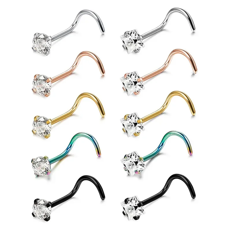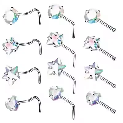 Indian Nose Jewelry Surgical Surgical Steel Piercing 18G 20G 22G Diamond Nose Piercing Stud Rings Fashion Piercing