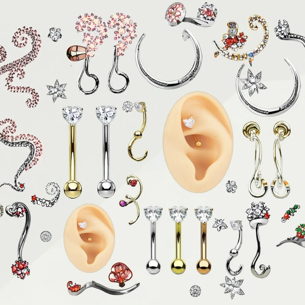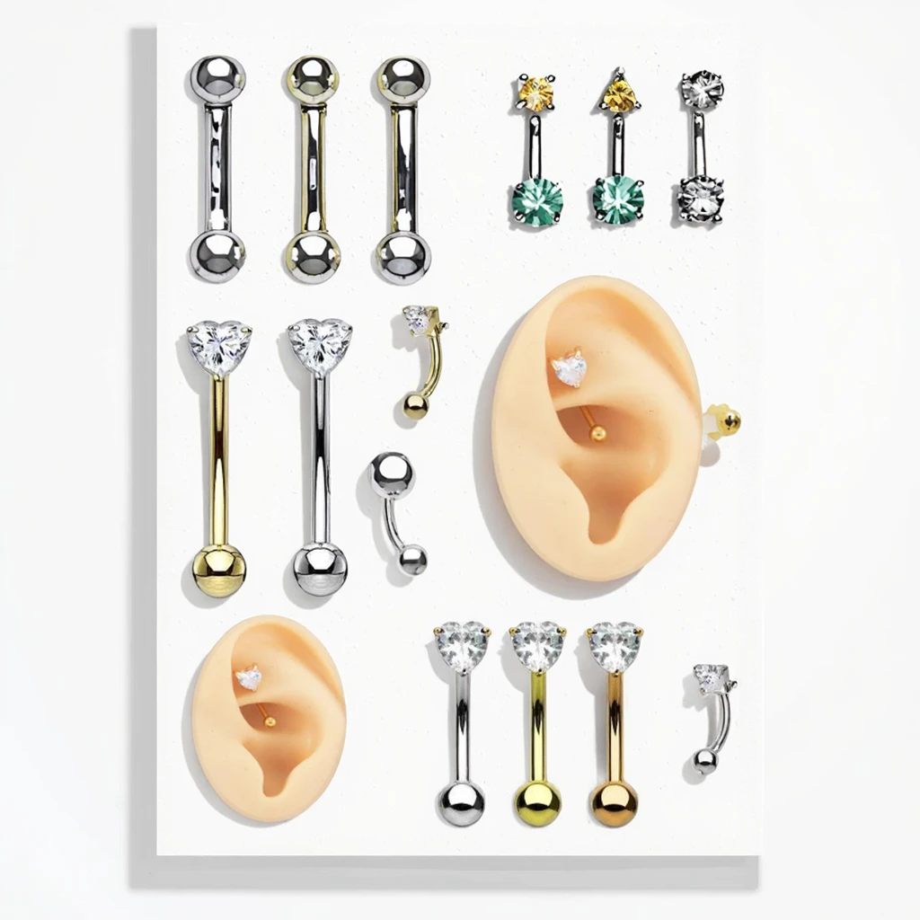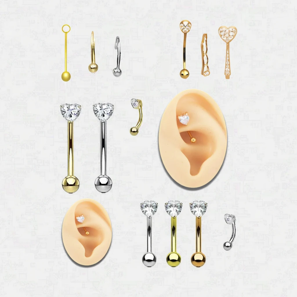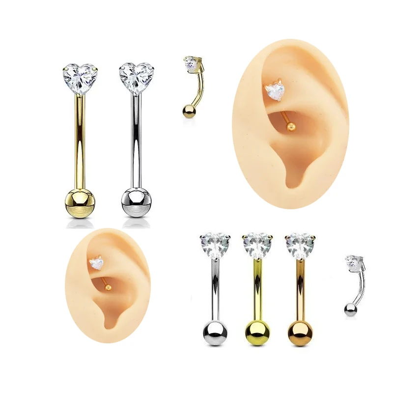 Stainless Steel Heart Eyebrow Piercing Trendy Design Rook Earrings for Women Fashion Body Jewelry 14G Curved Barbell
