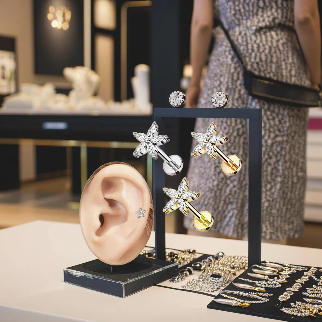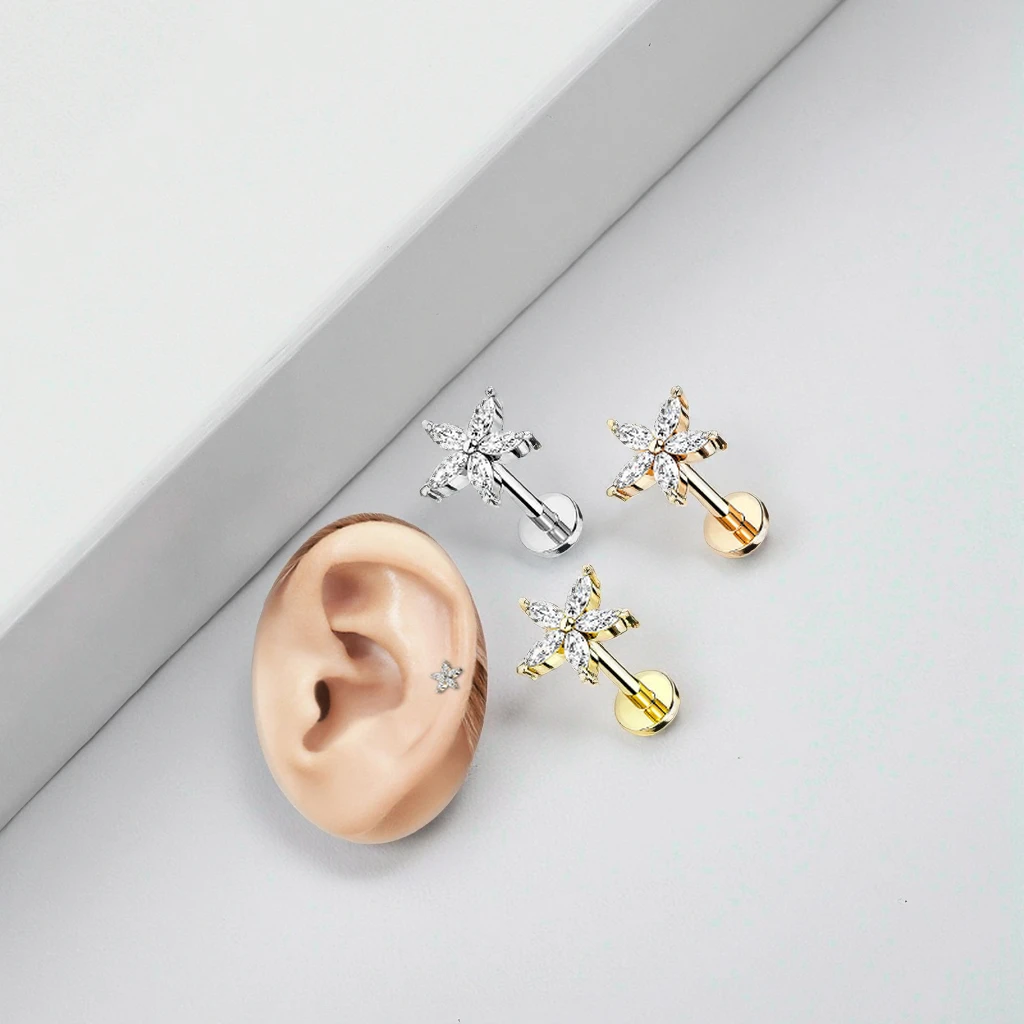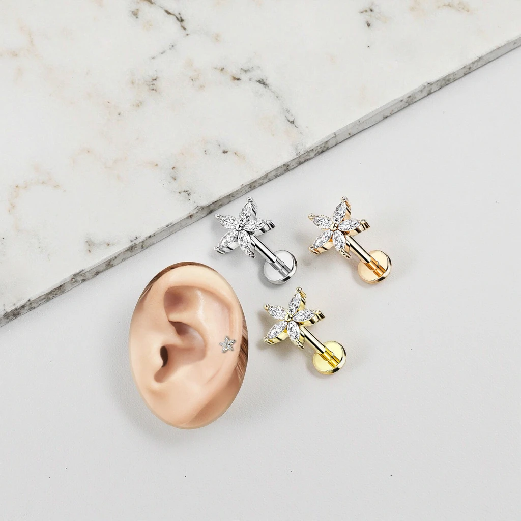 Flower Tragus Cartilage Helix Flat Back Earring Stainless Steel Body Piercing Jewelry Wholesale Labret Piercing Lip Ring