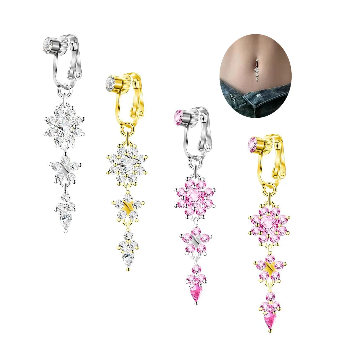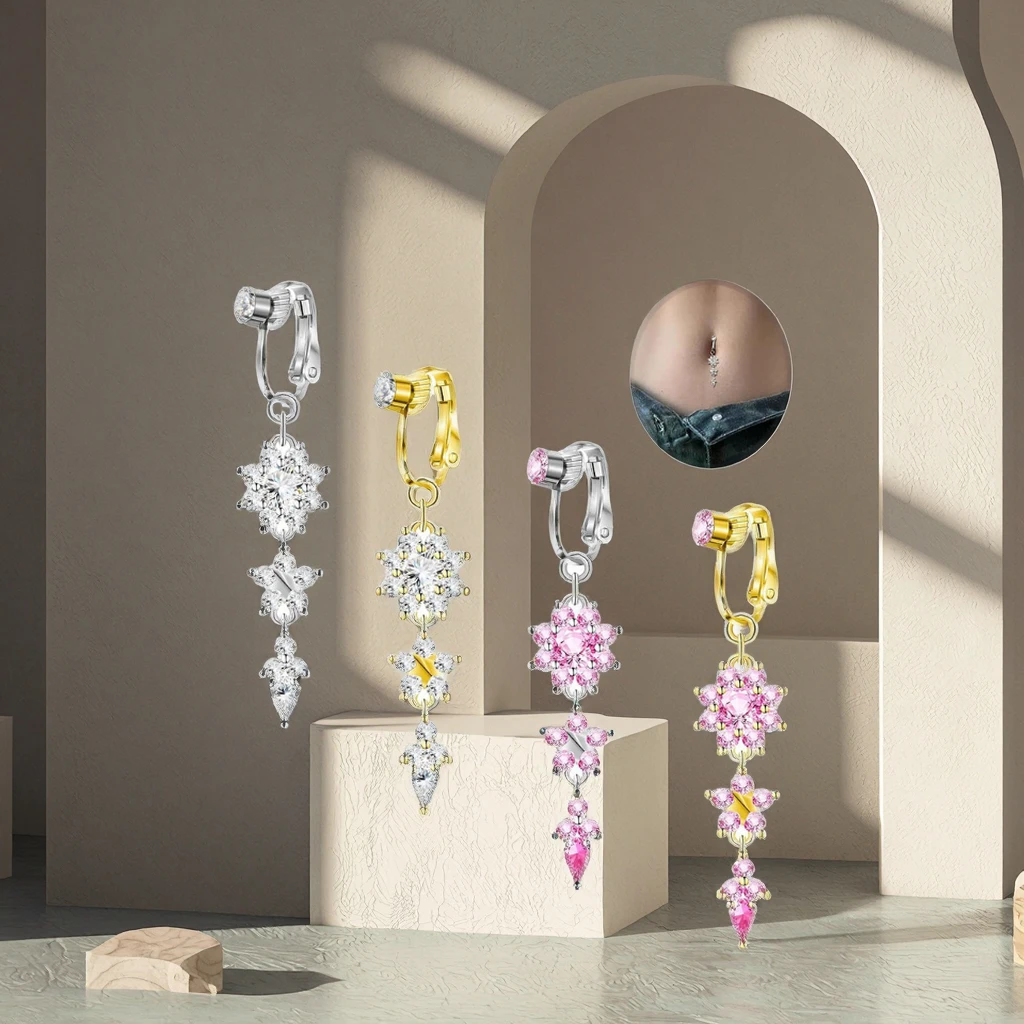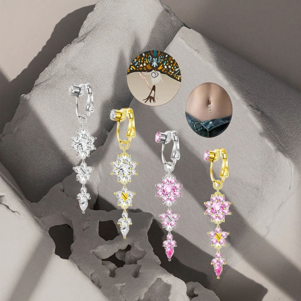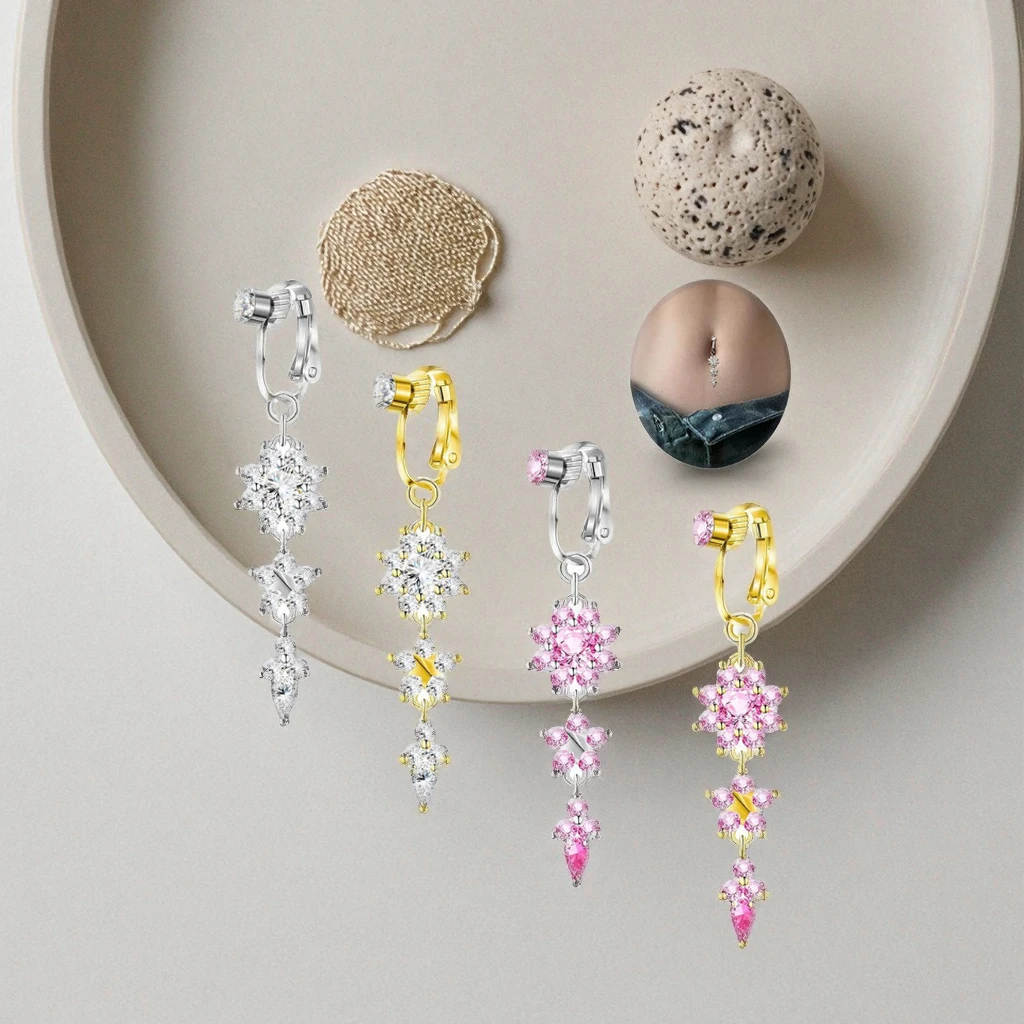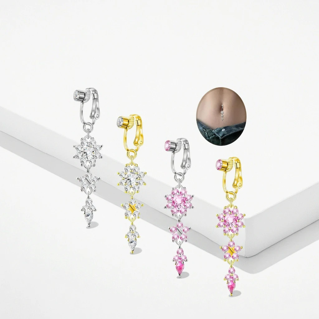Fake Body Jewelry Xinfocus New Trendy Fake Flower Belly Piercing Body False Navel Piercing Jewelry Non Piercing
