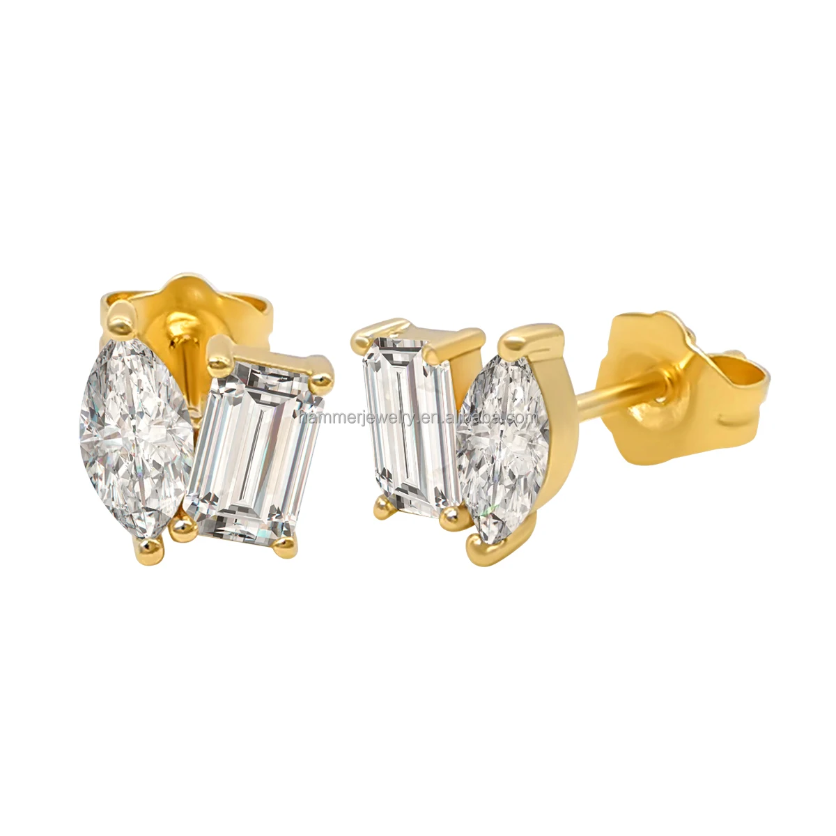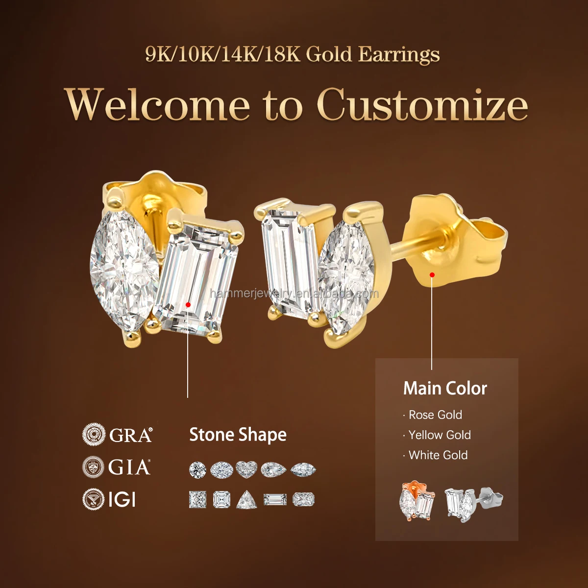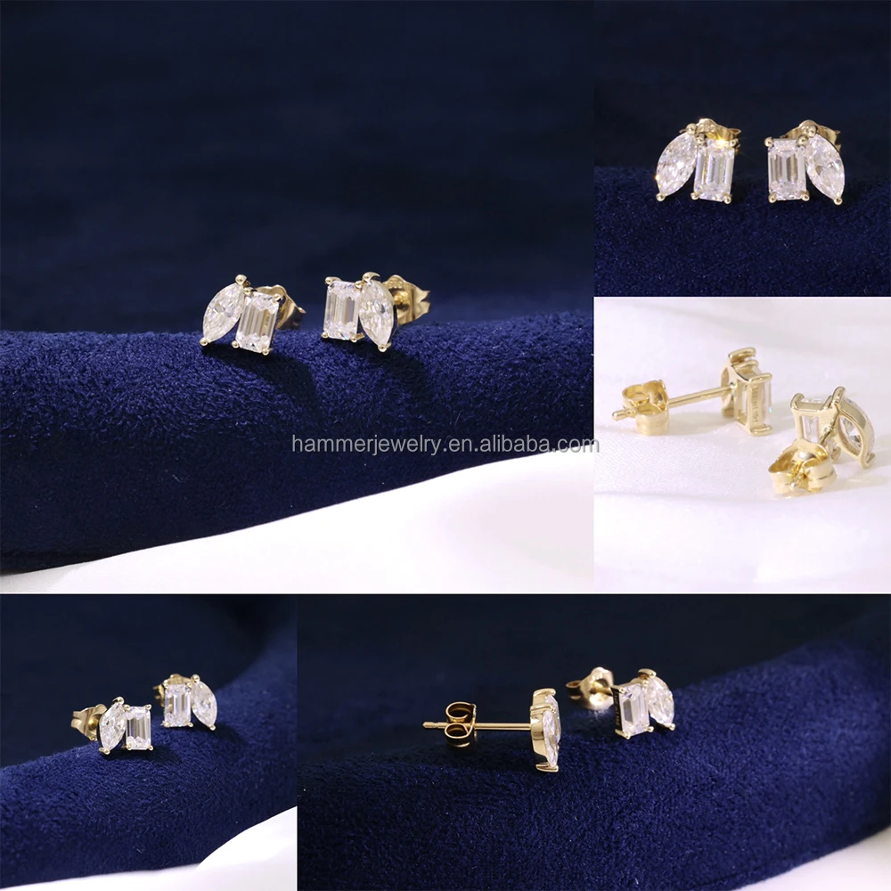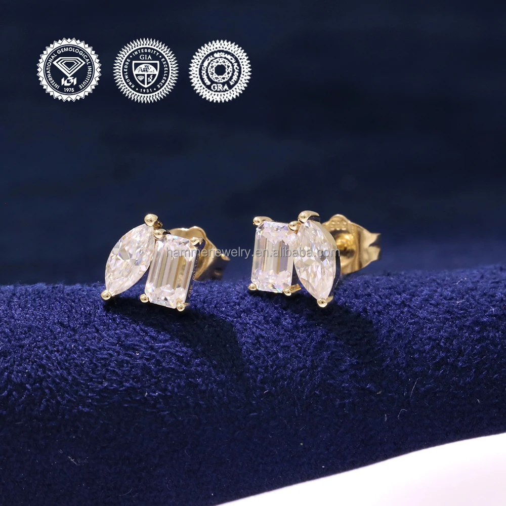 Wholesale 14K Solid Gold Stud Earrings with Moissanite Certified Trendy Design for Women & Children