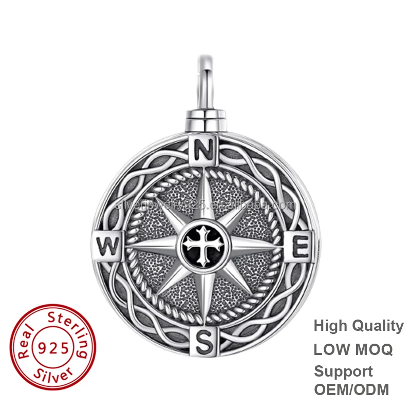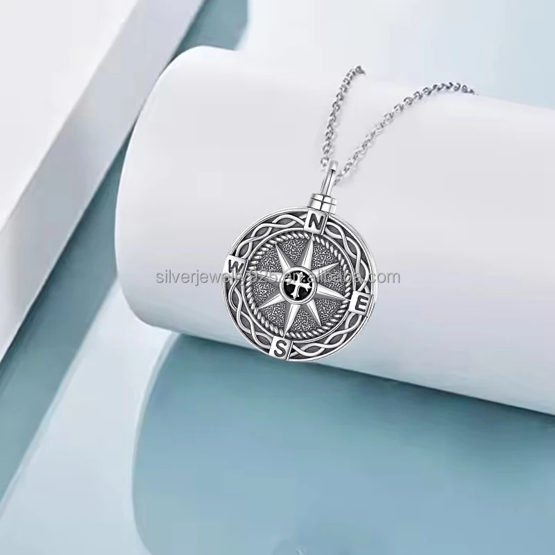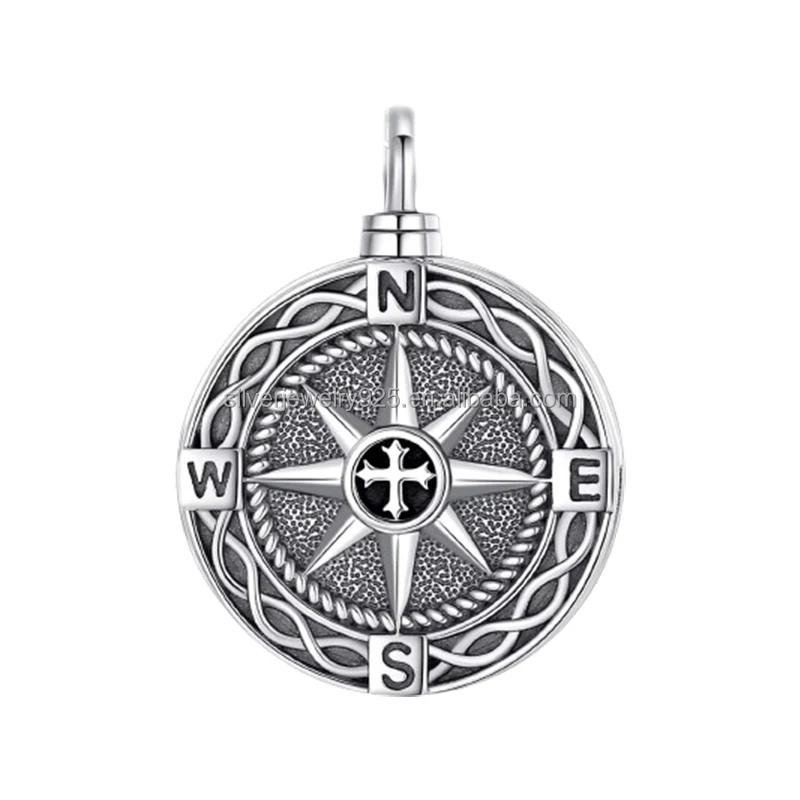 Fine Jewelry 925 Sterling Silver Rhodium Plated Compass Memorial Ashes Cremation Pendant Urn Necklace Pendant for Human Ashes