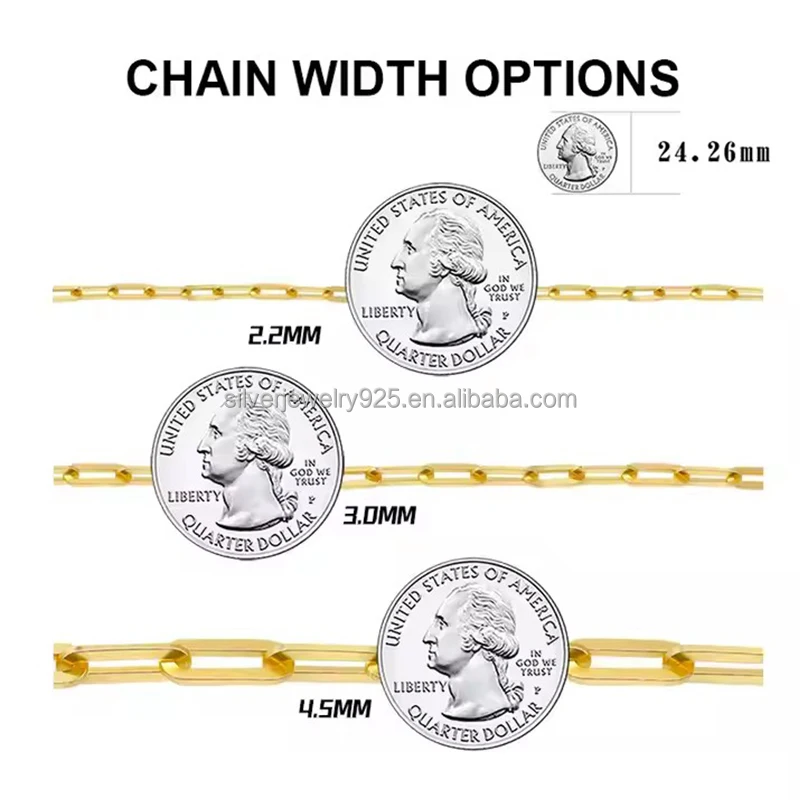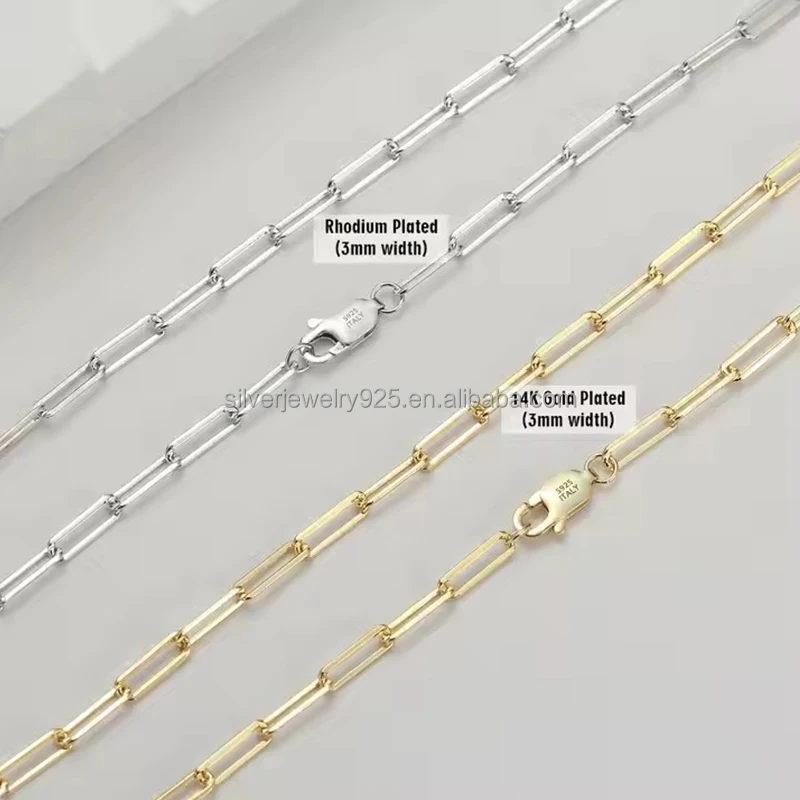 2026 Wholesale New Style Hiphop S925 Sterling Silver Italian Jewelry 3mm 6mm 14K Gold Plated Curb Paperclip Chain for Women Men