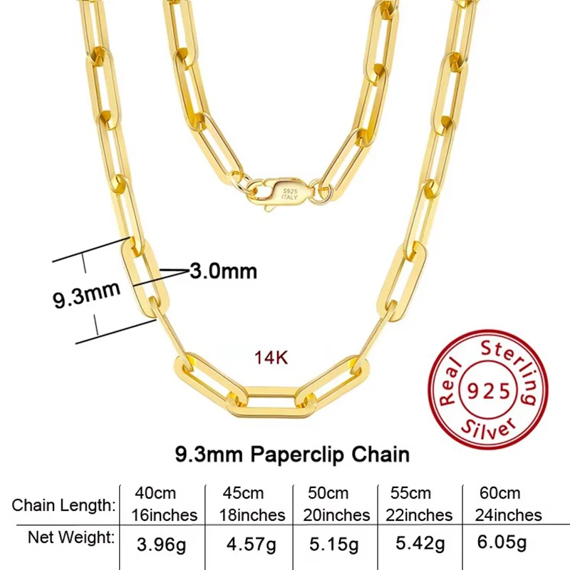 American and European Styles Hiphop S925 Sterling Silver Italian Jewelry 3mm 6mm 14K Gold Plated Curb Paperclip Chain for Women