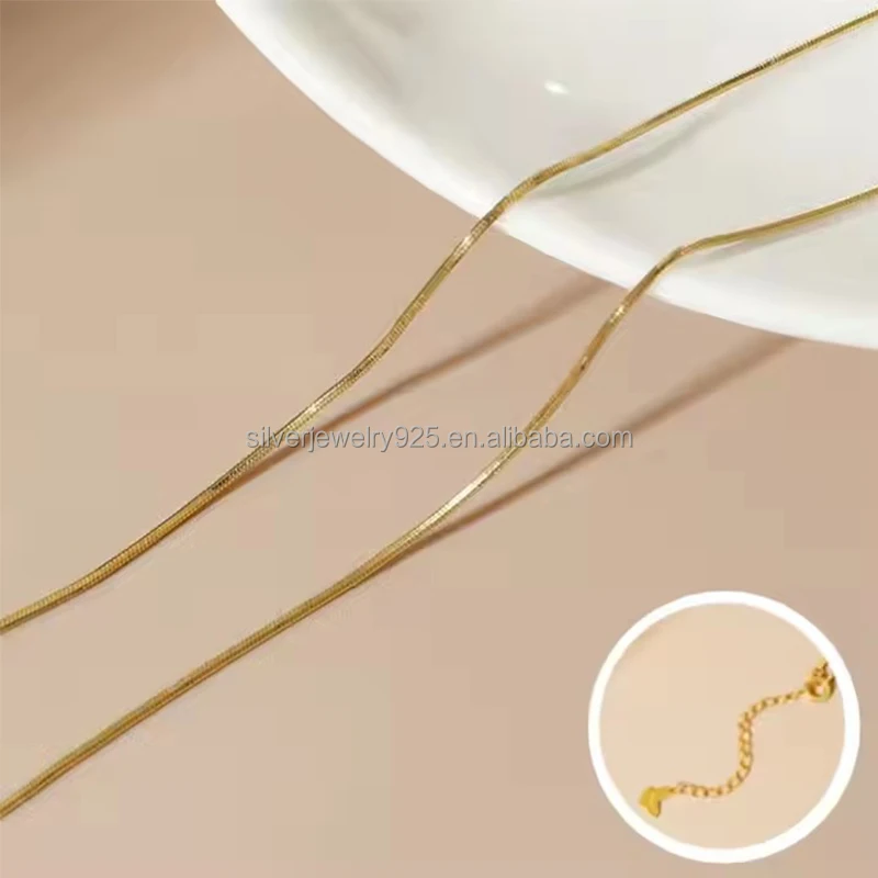 Wholesale Trendy S925 Sterling Silver 3mm/5mm Flat Herringbone Snake Chains Necklace 18K Gold Plated Non-Tarnishing for Gifts