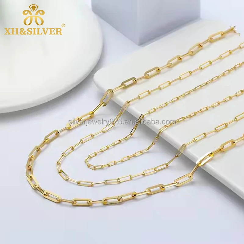 Wholesale American Style Hiphop S925 Sterling Silver Italian Jewelry 3mm 6mm 14K Gold Plated Curb Paperclip Chain for Women Men
