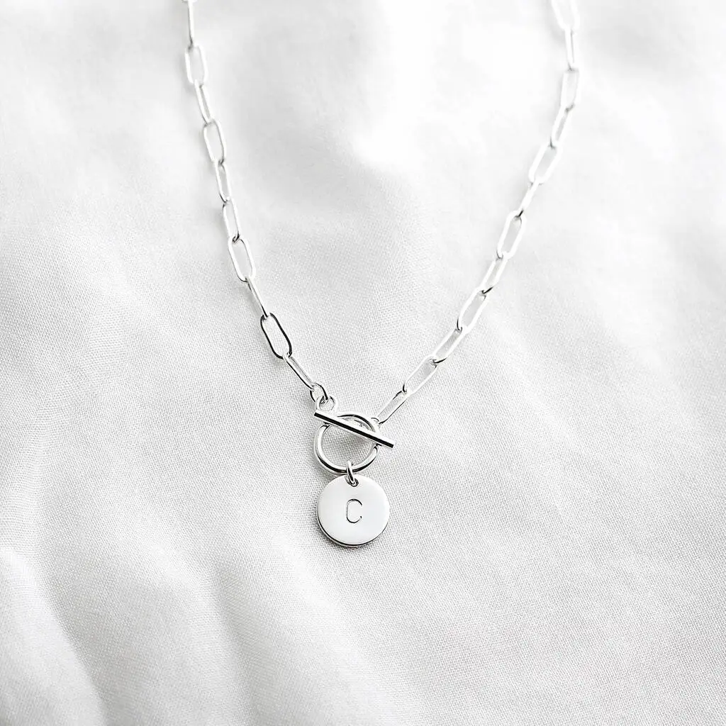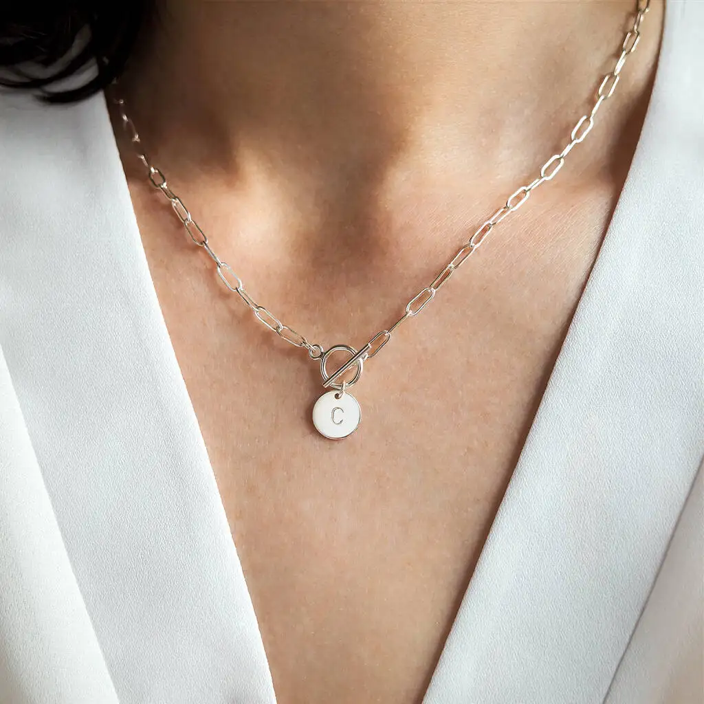 Wholesale American Style Classic Style Paperclip Necklace Sterling Silver 925 Paperclip Chain Necklace With Initial for Women