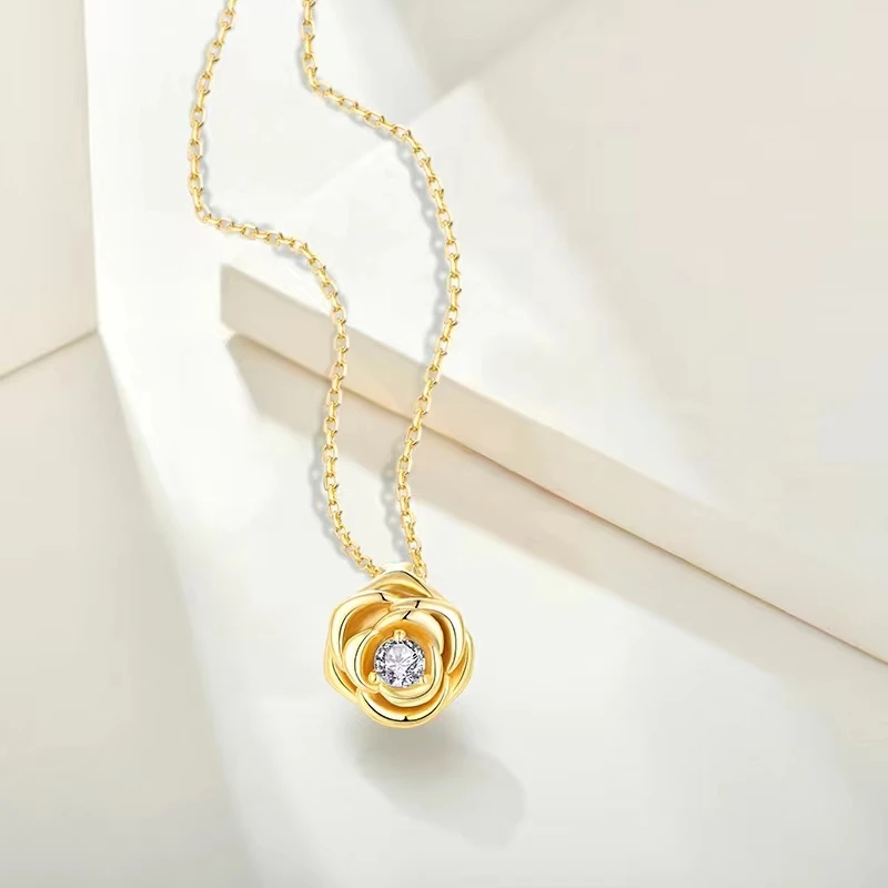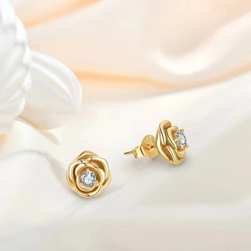 2026 New Arrival 925 Silver Flower Necklace Earring Set Gold Plated Zircon Stones Classic for Wedding Party for Valentine's Day