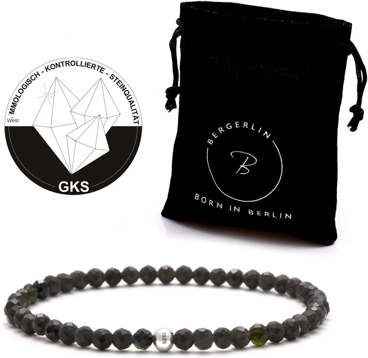 BERGERLIN China BL-20 Genuine Natural Stone Pearl Bracelet with 925 Sterling Silver Unisex Certificate Authenticity