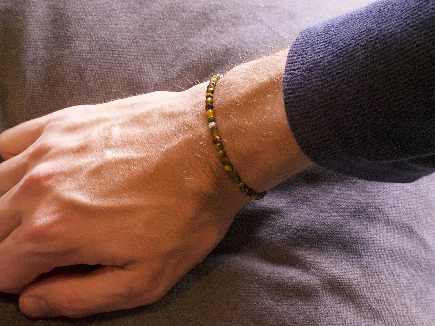 BERGERLIN Tiger's Eye Natural Stone Bracelet 925 Sterling Silver Pearl BL-20 Model Men Women Made China Certificate Authenticity