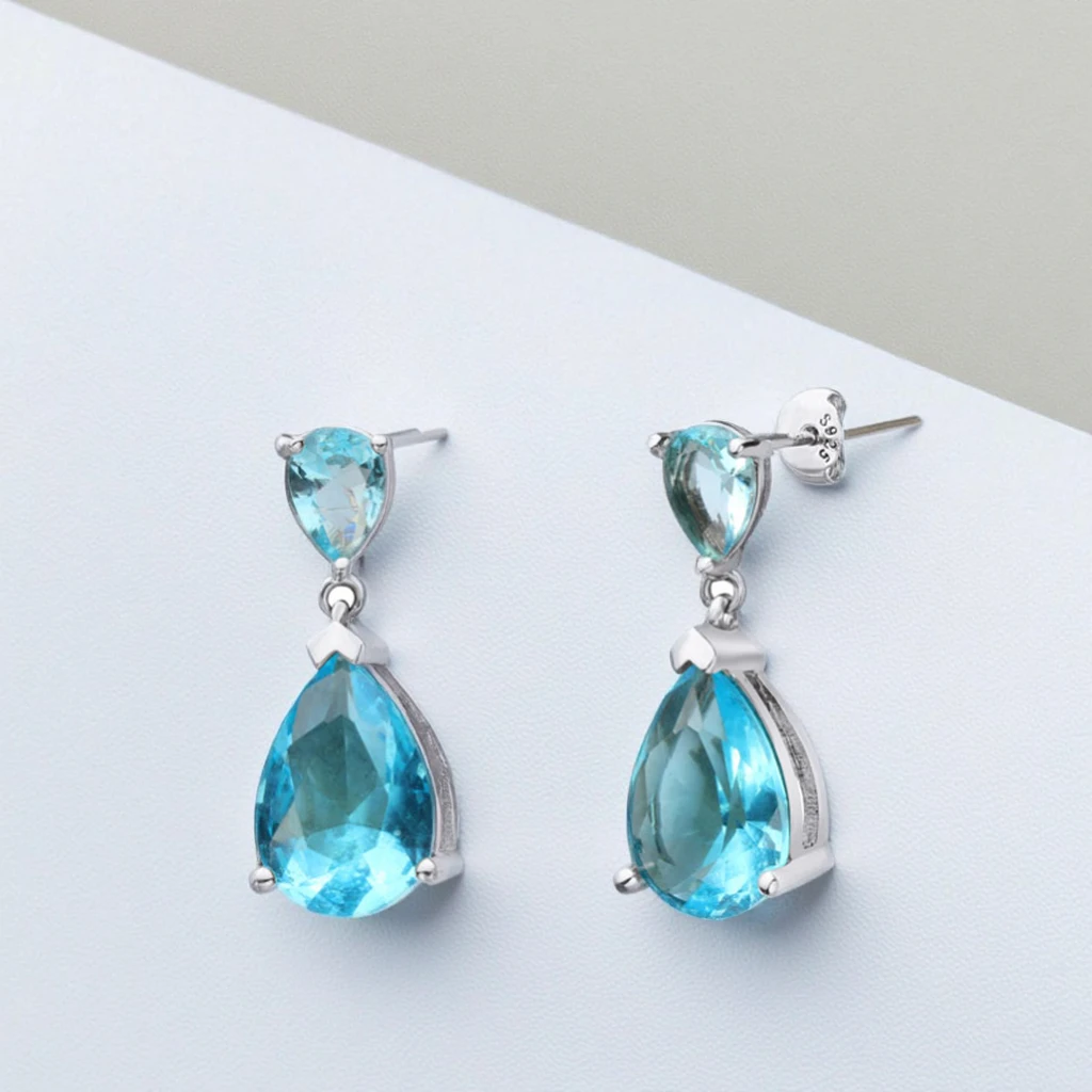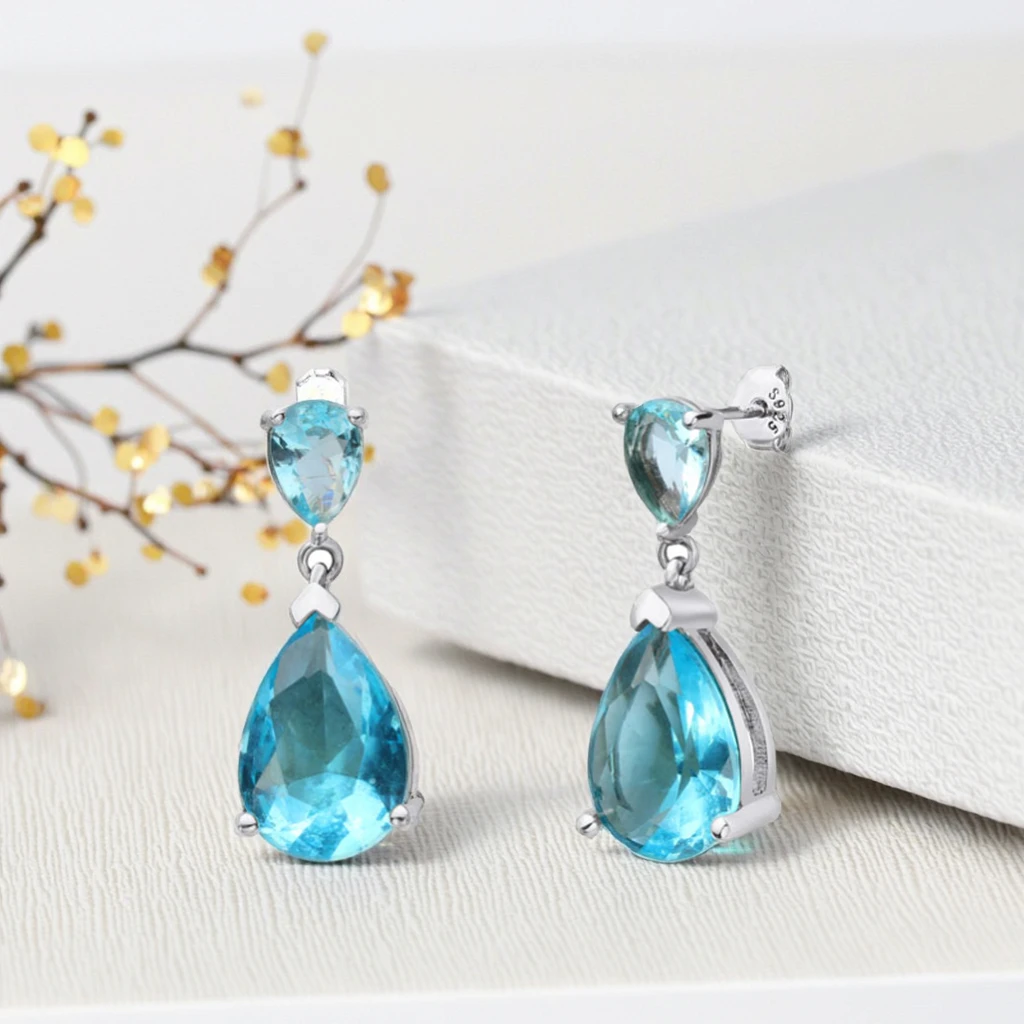 Keiyue New Fashion Clear Blue Teardrop Dangle Stud Earrings Personality Charm Gemstone for Women Party Accessories Jewelry