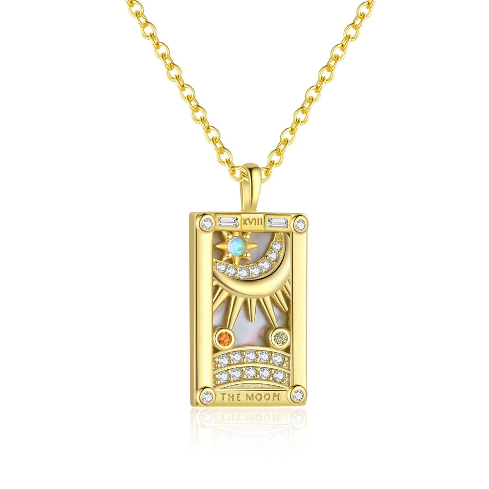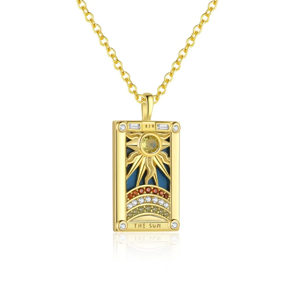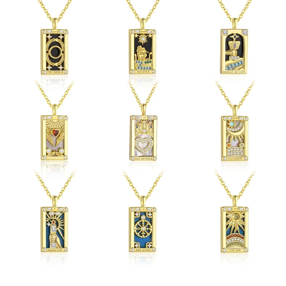 S925 Sterling Silver European American Retro Tarot Pendant Necklace Gold Plated Oil Drop Zircon Niche Antique Cross Border