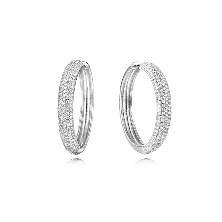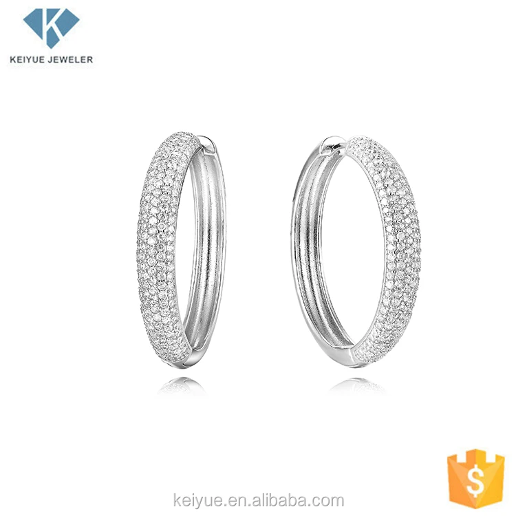 Keiyue 925 Sterling Silver Large Hoop Earrings Classic Style CZ Pave for Wedding Party Gift Fashionable Jewelry Trusted Supplier
