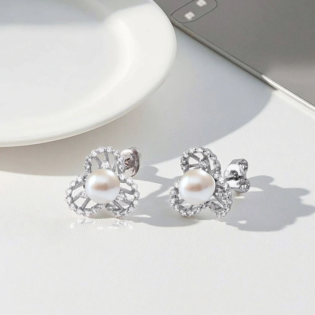 Keiyue Unique 925 Sterling Silver Pearl Hoop Earrings Elegant 925 Silver Pearl Studs for Women