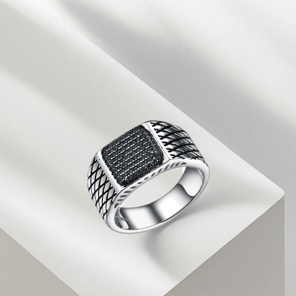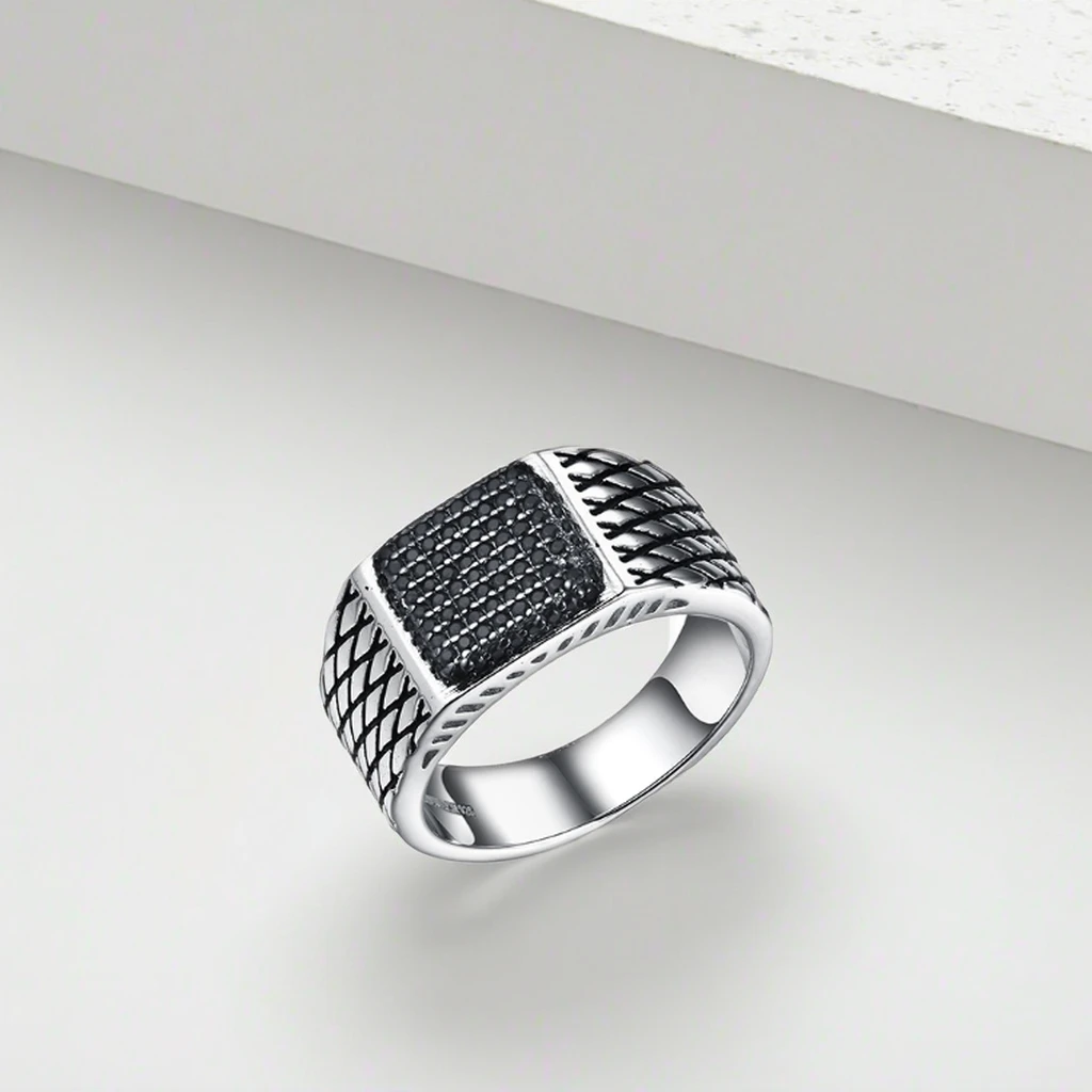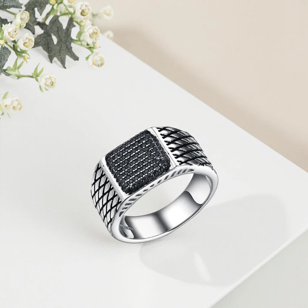 Keiyue 2026 New Arrival Men's Hip Hop Design Silver Plated Fashion Rings Square CZ Pave Finger Rings