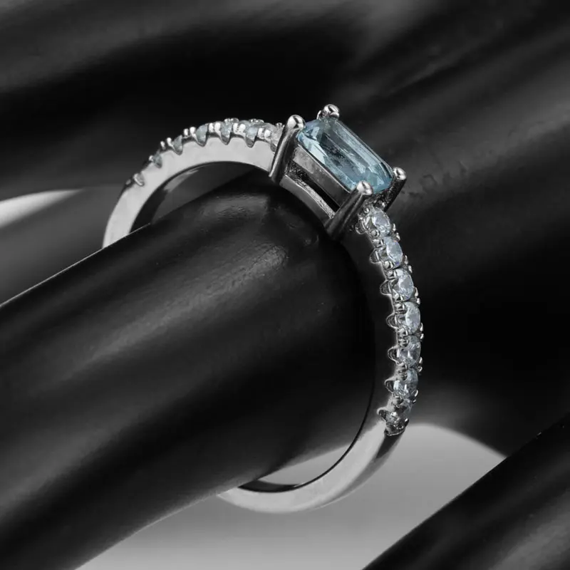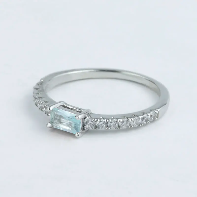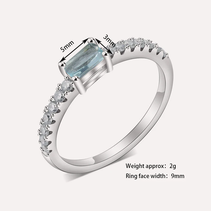Keiyue Custom 925 Sterling Silver Jewelry Ring Square Cut 3mm*5mm Aquamarine Zircon Tungsten Material Engagement Ring