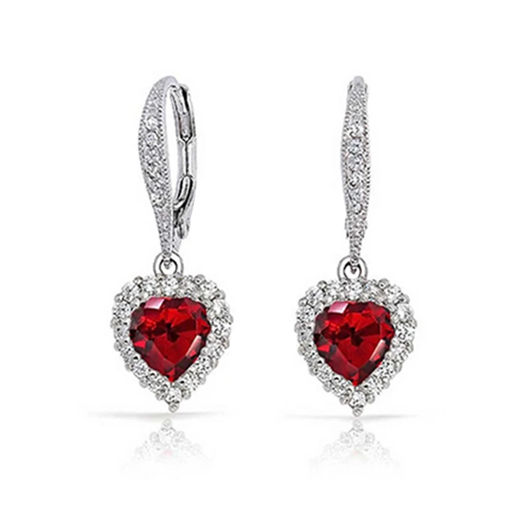 Keiyue 2026 Latest Pure Transparent Zircon Heart Forever Love Red Stone Classic Wedding Party 925 Sterling Silver Wire Earrings