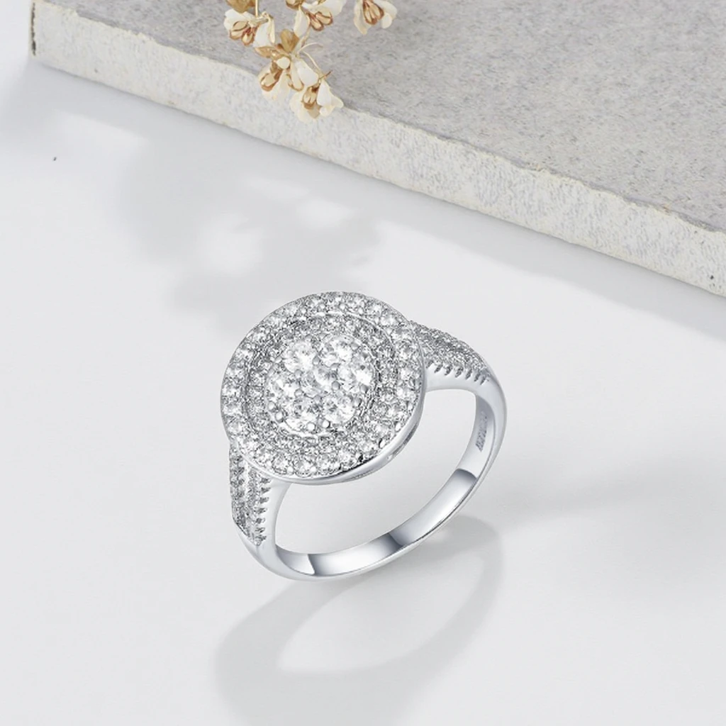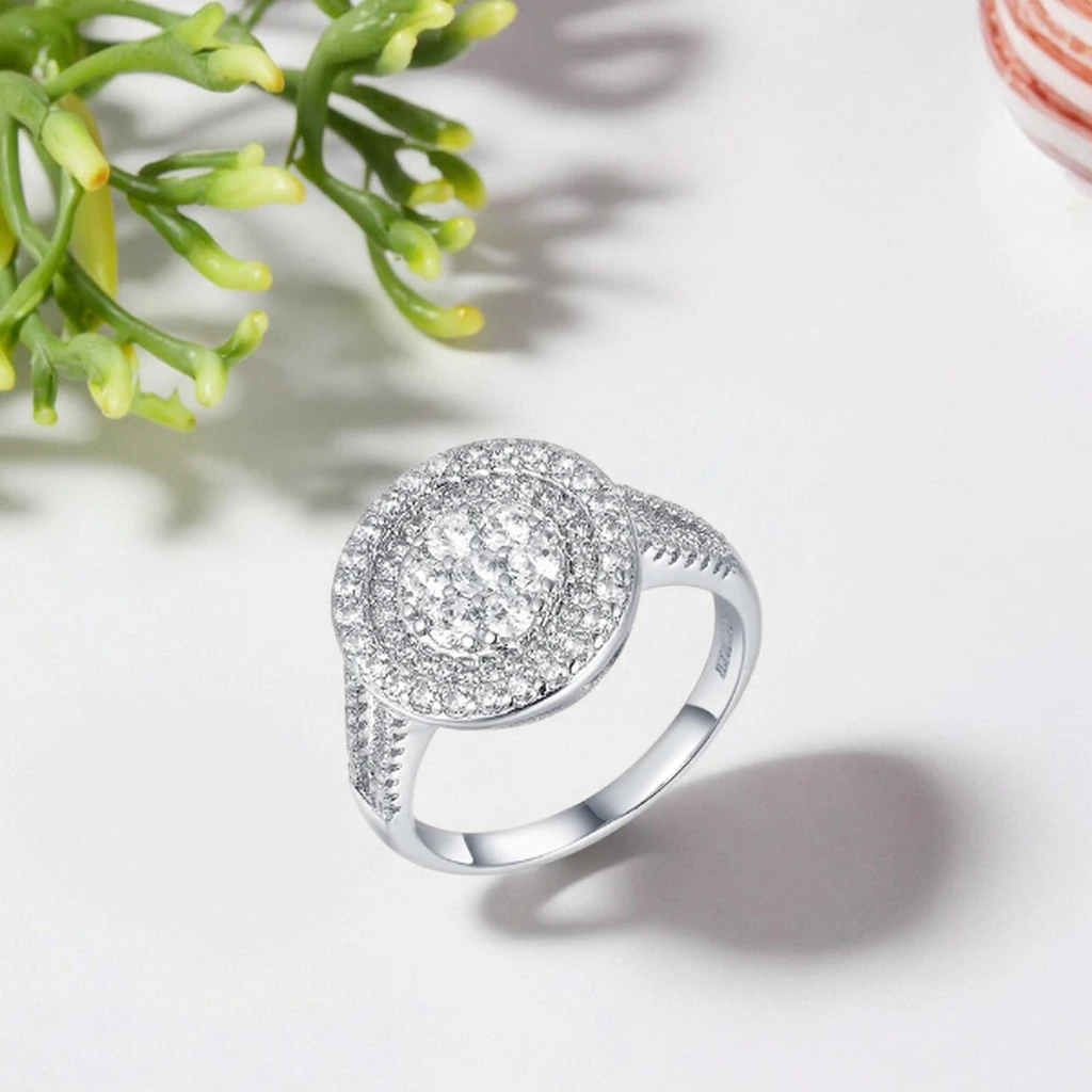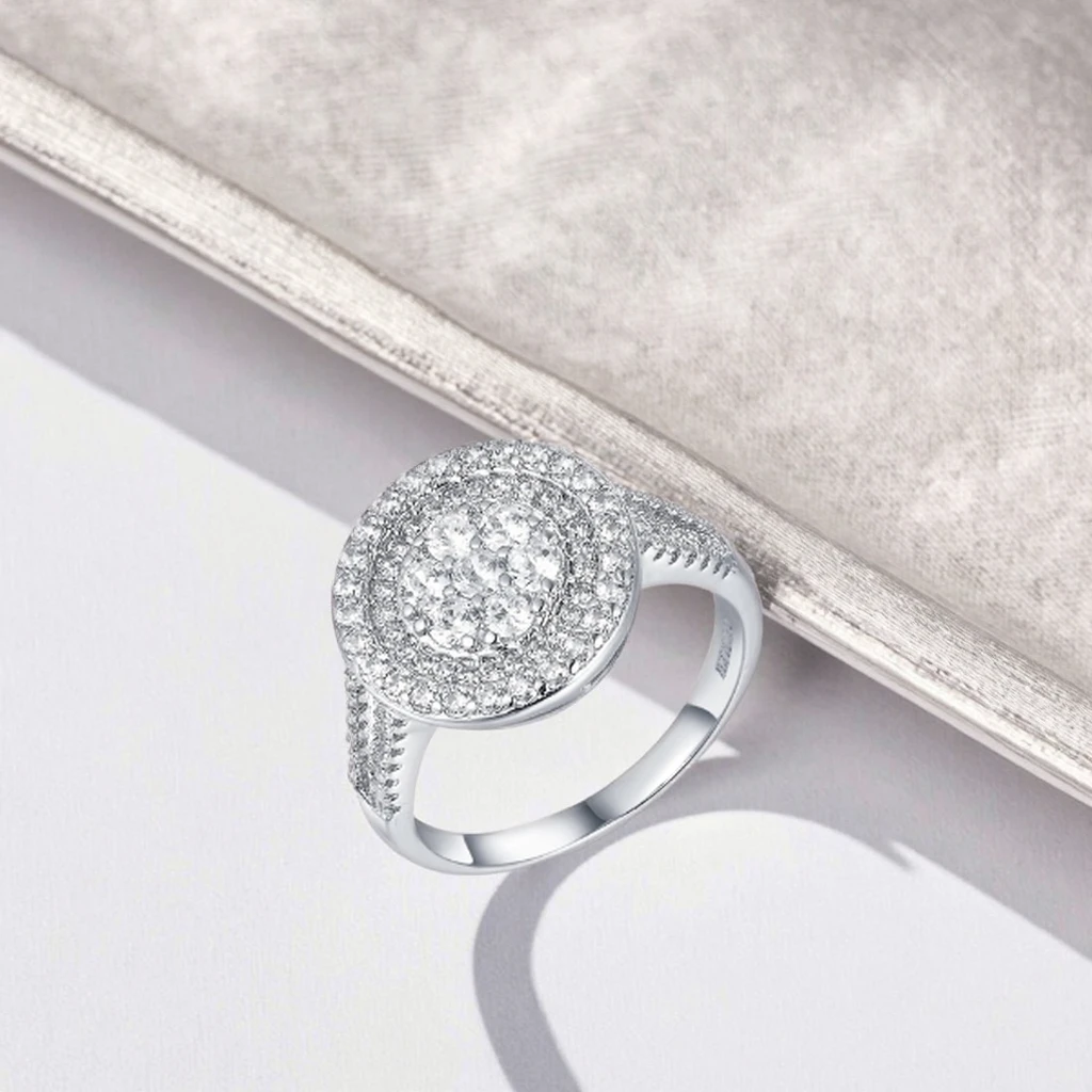 Keiyue Fashion Cubic Zirconia Cz Pave Premier Jewelry Engagement Solitaire Rings with Claw Setting for Women Silver Plated