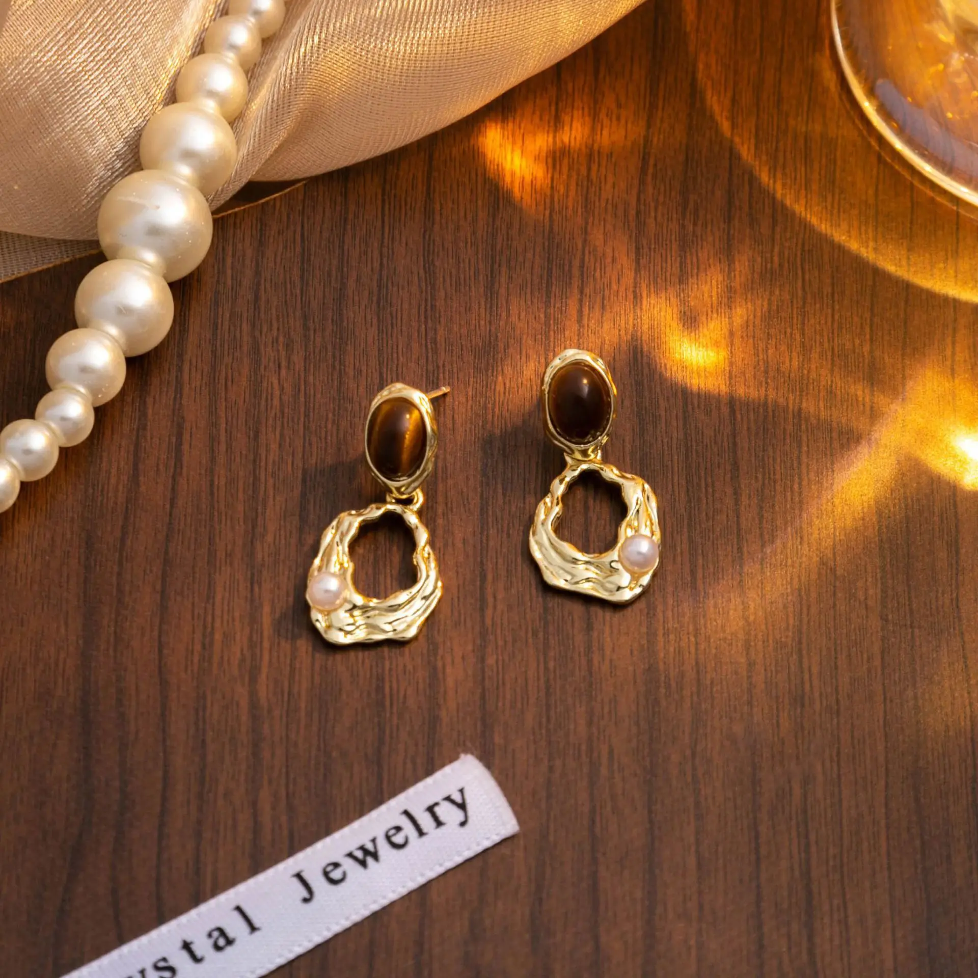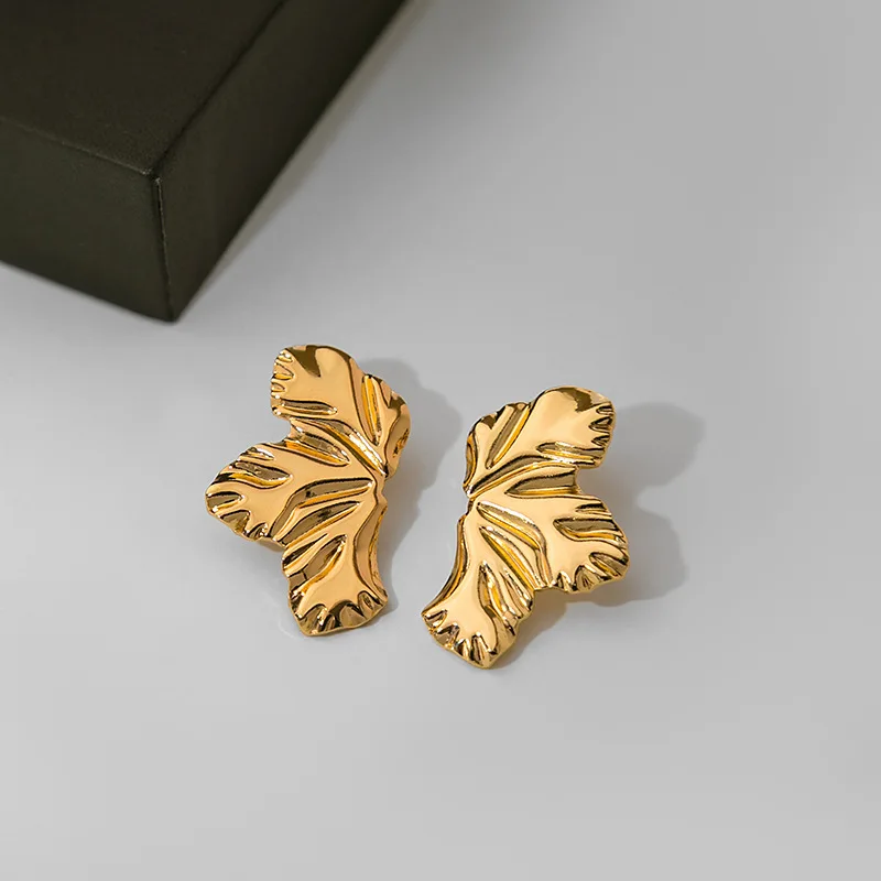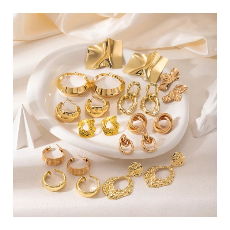 European American Simple Elegant Metal Wind Ring Earrings Retro Exaggerated Irregular Electroplating High-Grade Trendy Womens