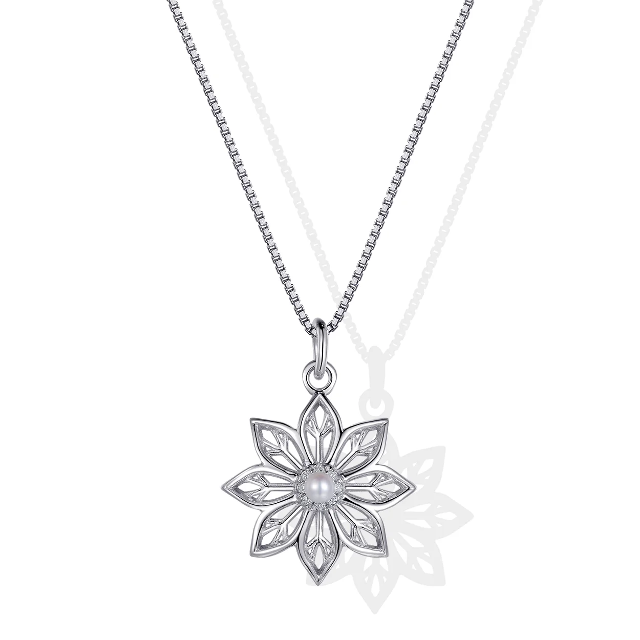 Original Design 9K White Gold Diamond Lotus Flower Pearl Pendant Women Necklace Destiny Jewellery
