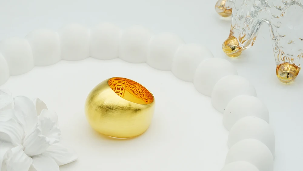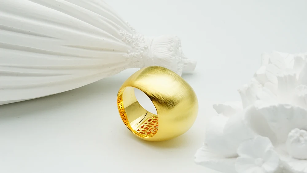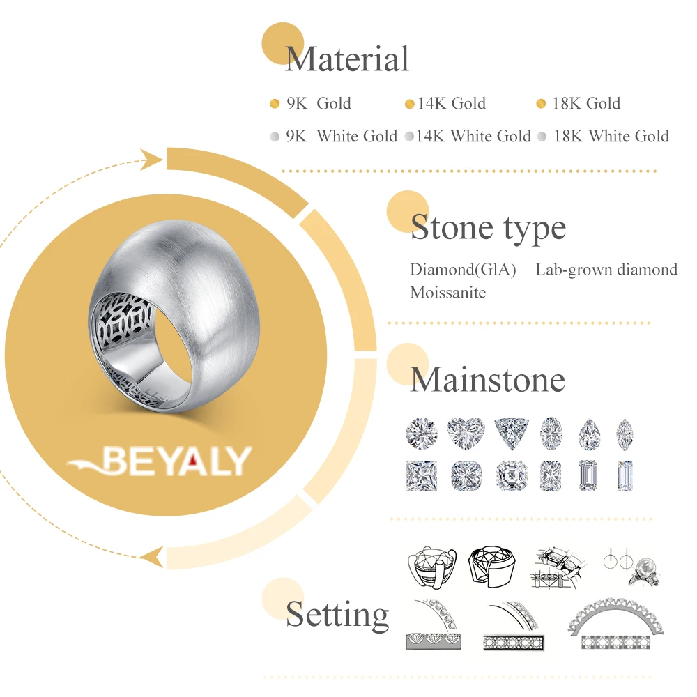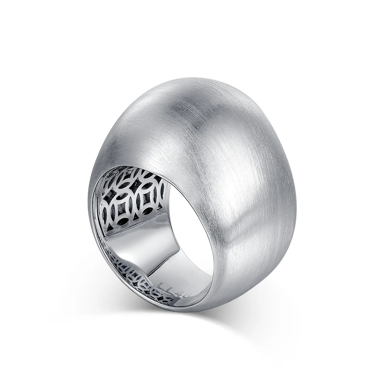 Fashion Personalized Charms Women's Ring 9k 14k 18k White Gold Ring With Egg Shape Design and Brushed Treatment