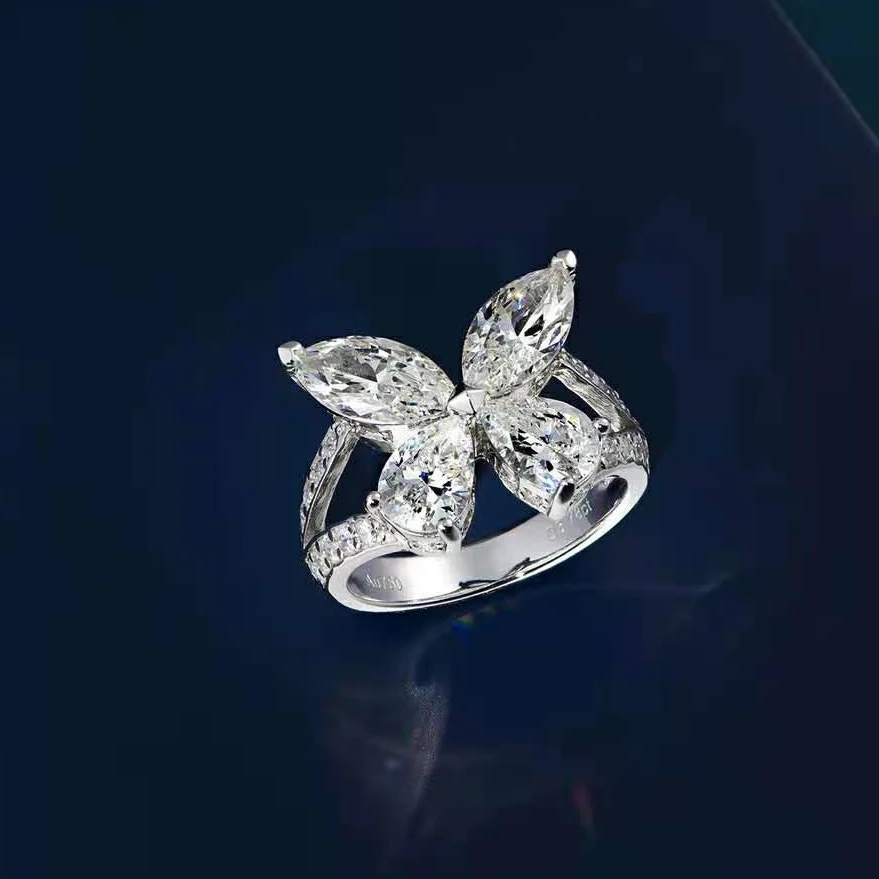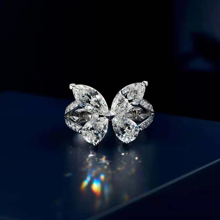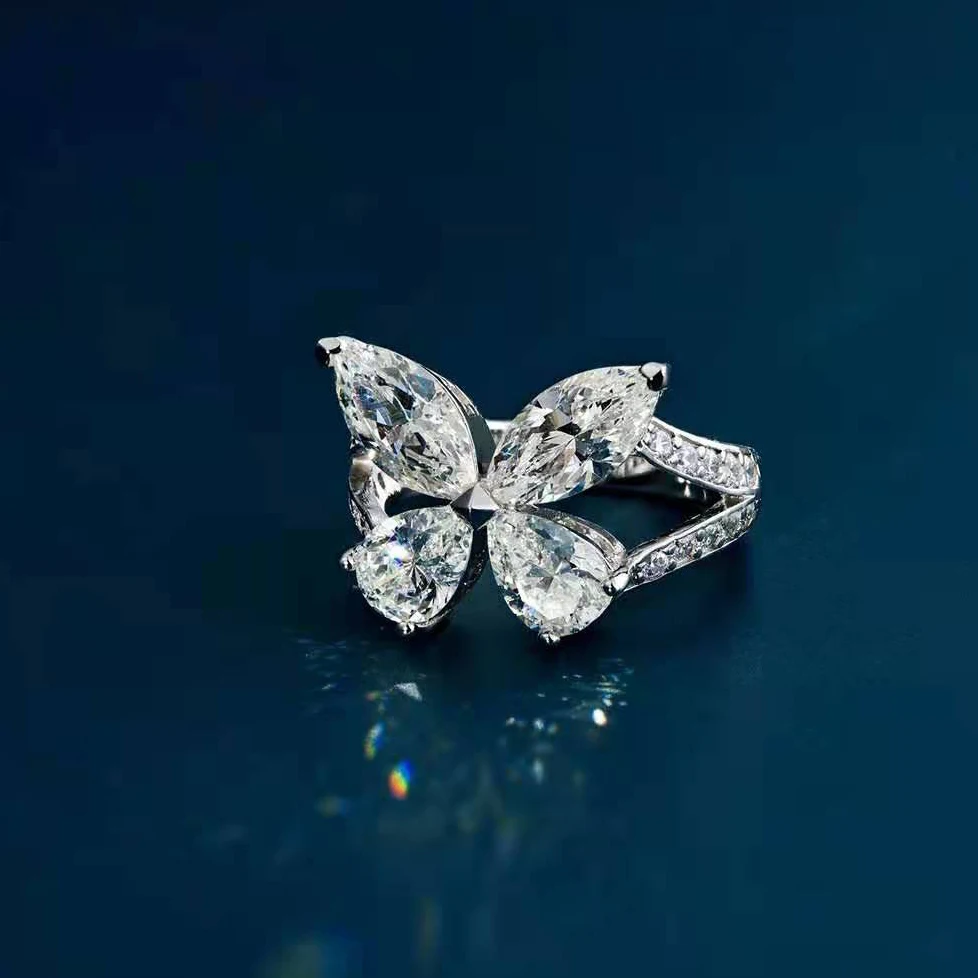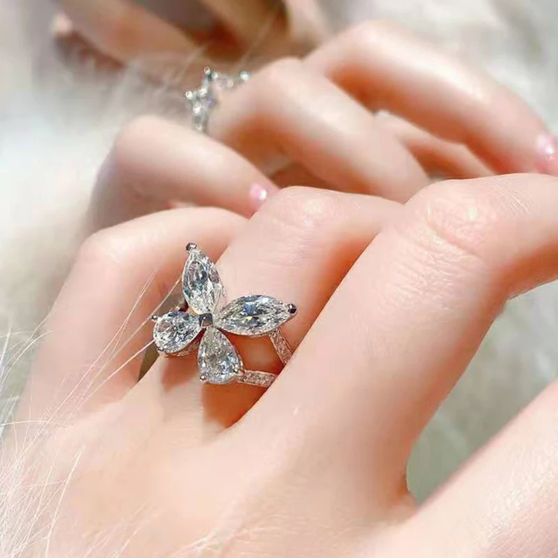 Custom Luxury Women's 925 Silver Ring Cute Butterfly Design with Diamond Rhodium Plated for Party or Anniversary