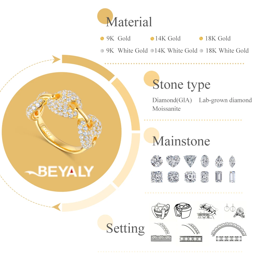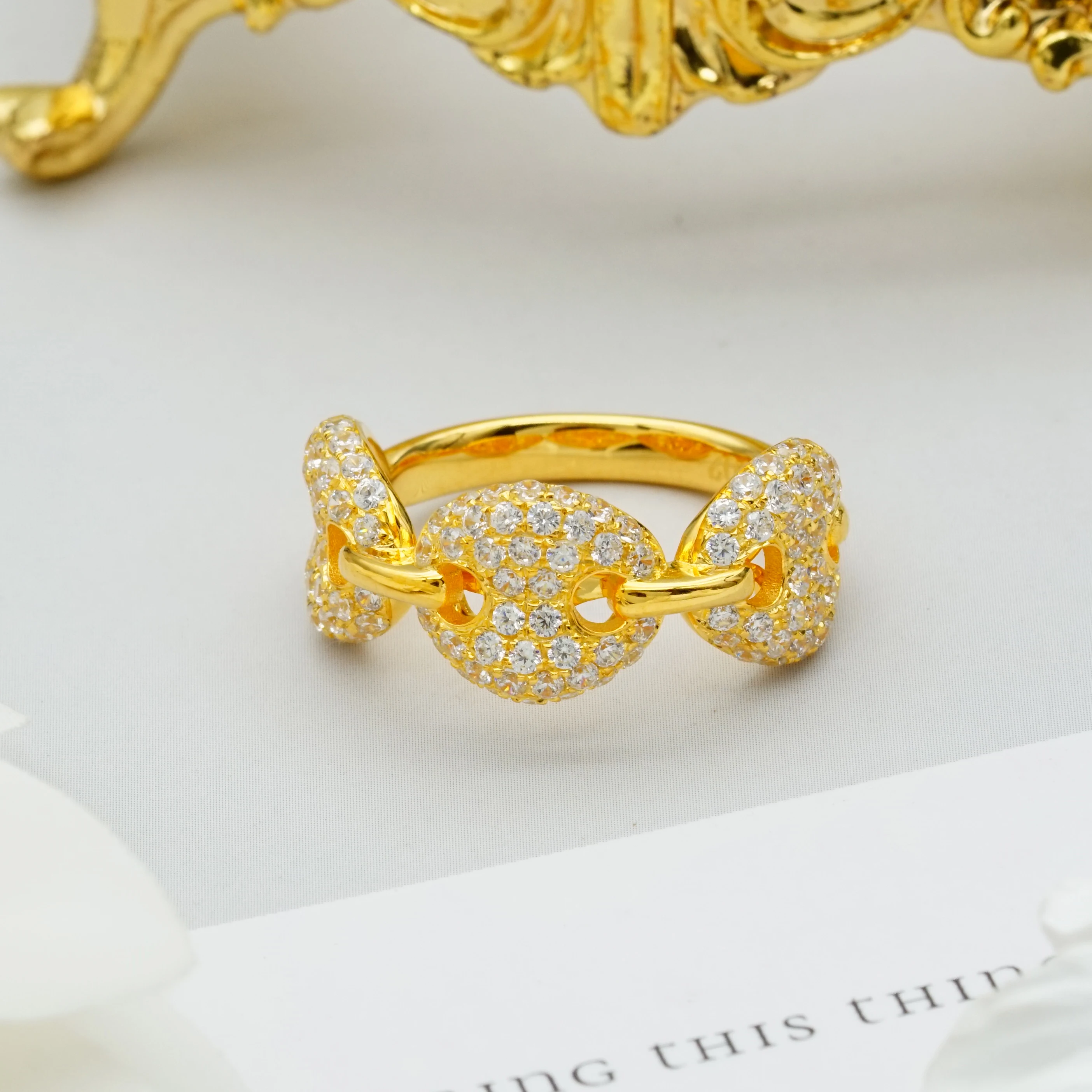 Fashion Jewelry 9k 14k 18K Real Gold Luxury Diamond Inlaid Ring Hip Hop Style Rings for Women