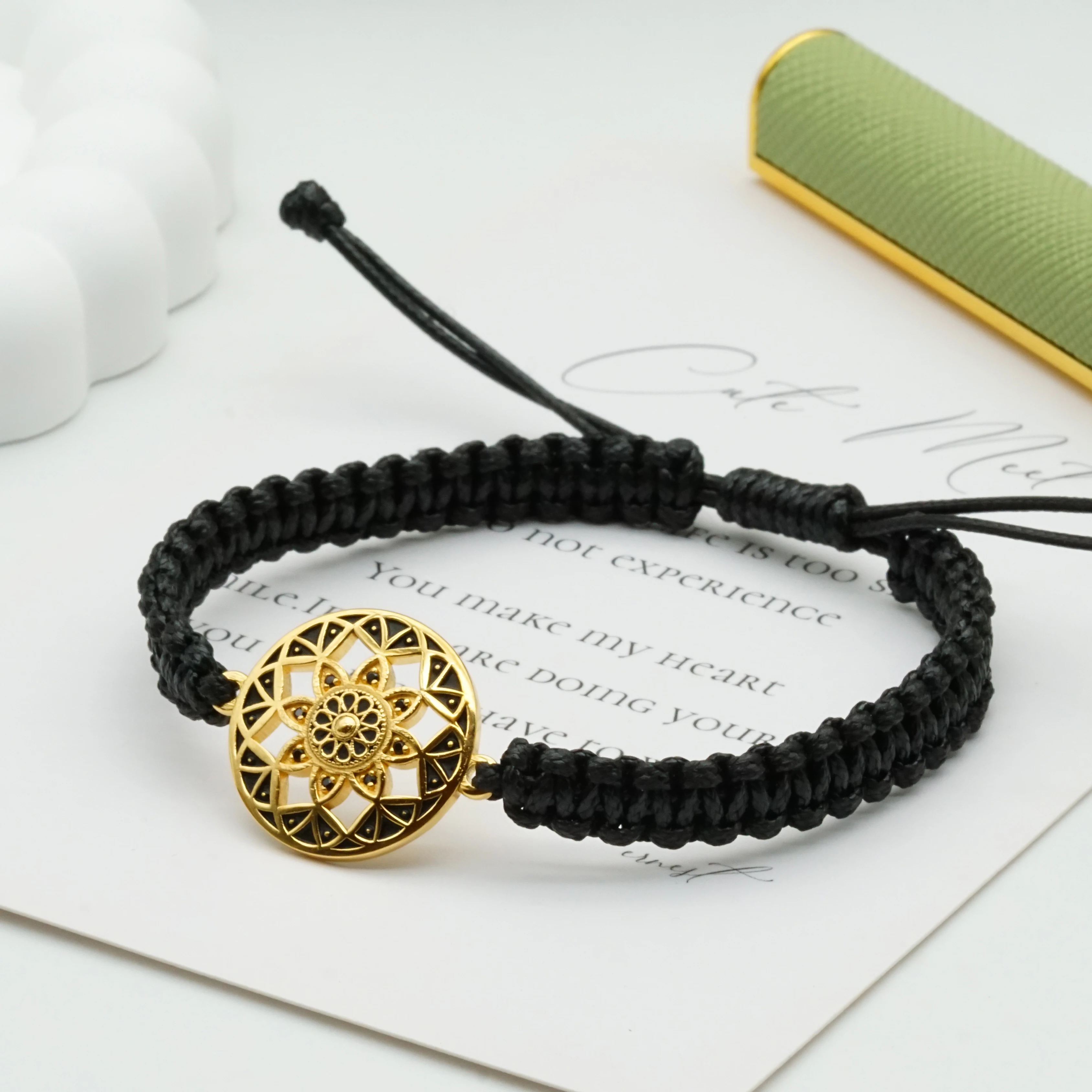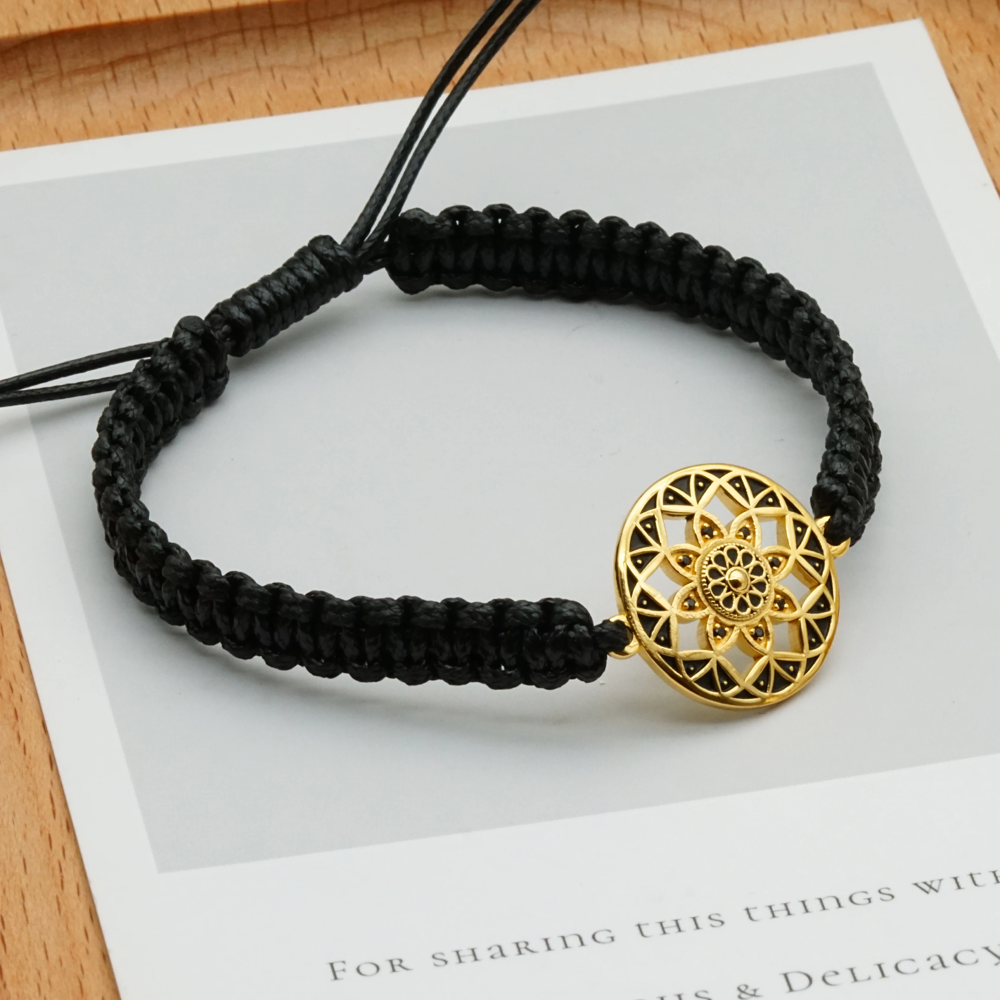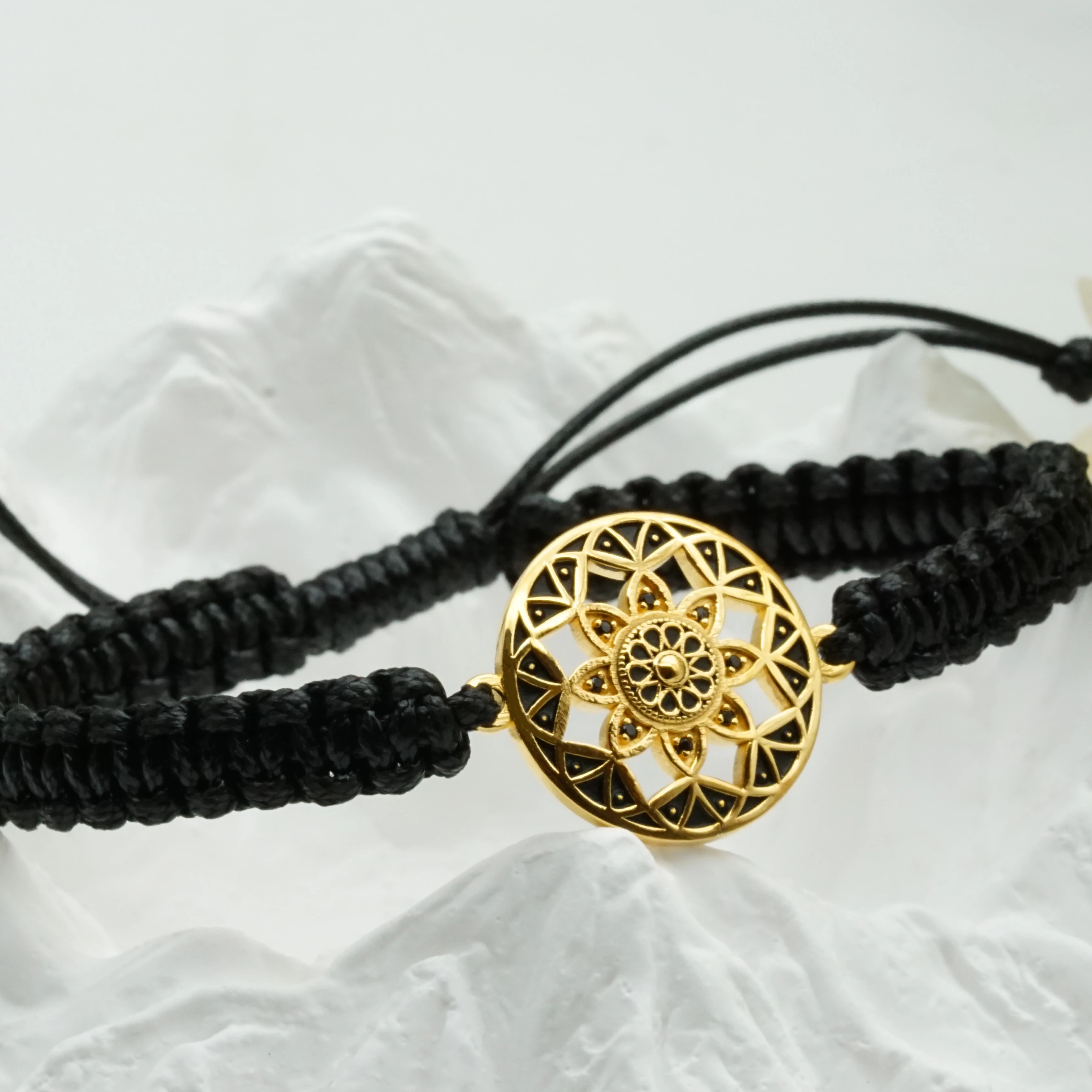 Geometric Pattern Bracelets Jewelry Mandala Design with Black Zircon Inlay Adjustable Rope Charm Bracelet
