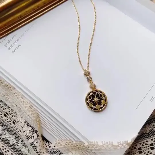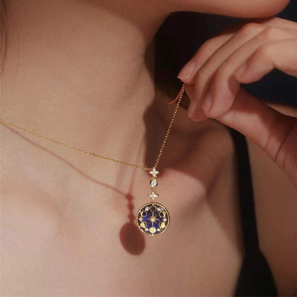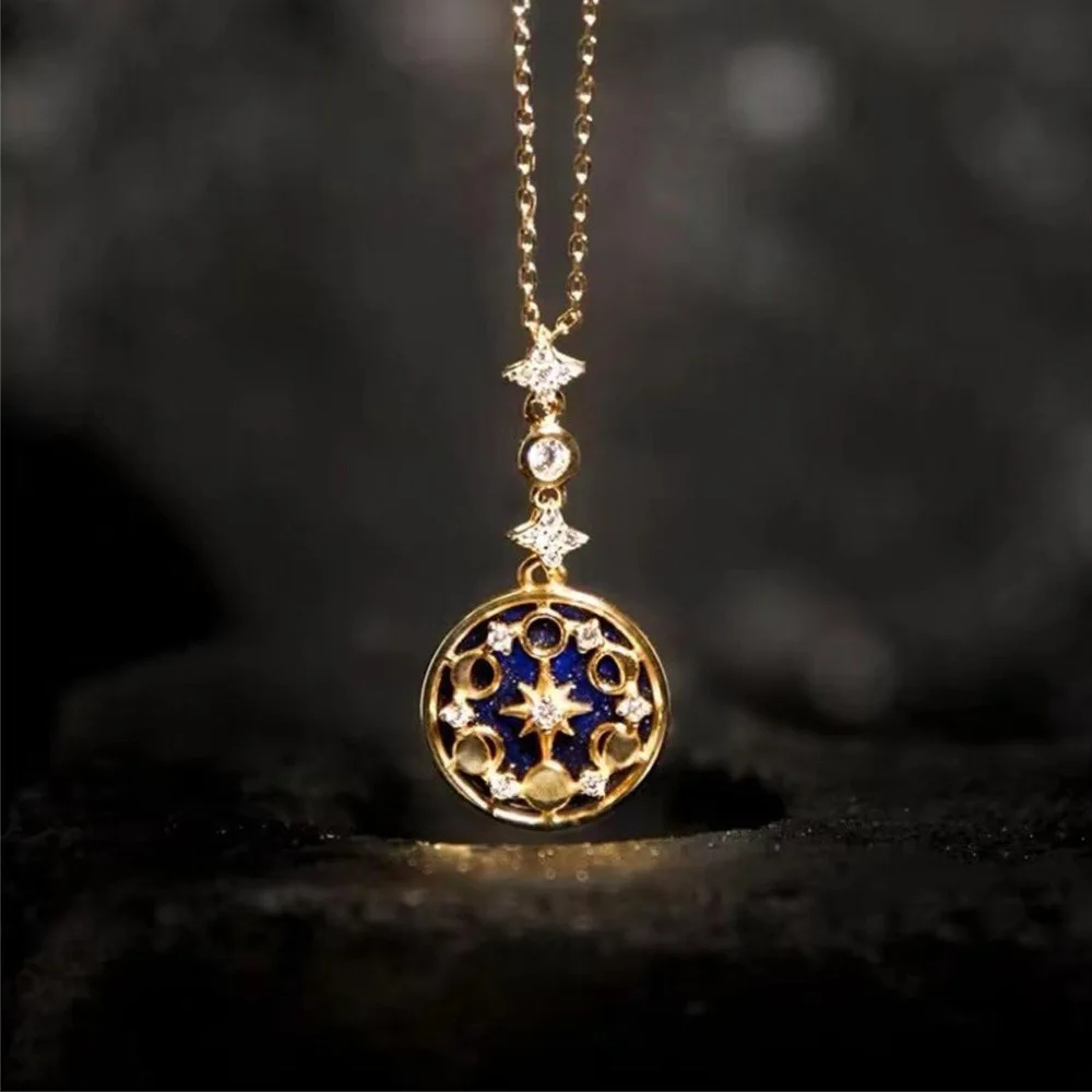 Minimalist Style Blue Sandstone Moon Phase Star Delicate Clavicle Necklace Jewelry Trendy Womens Pendant Necklace Daily Jewelry
