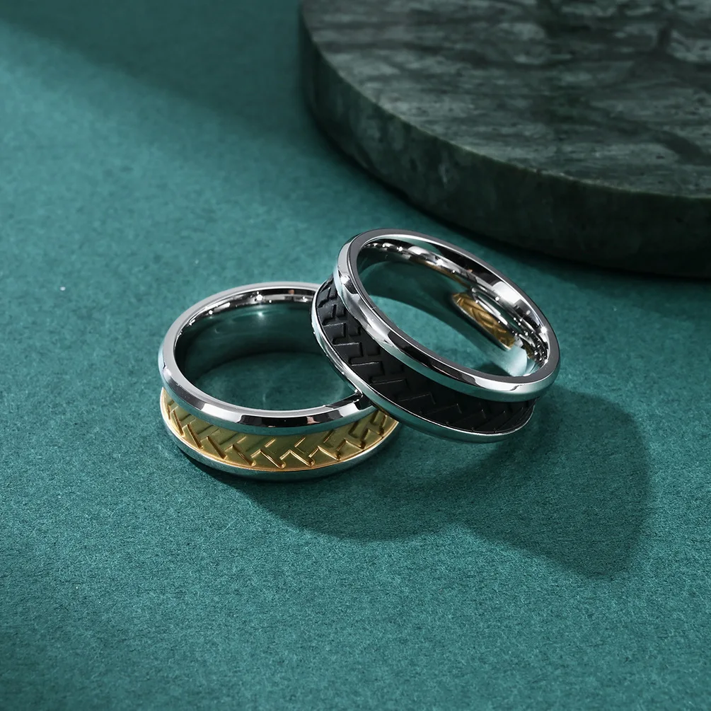 2026 New Style Creative Retro Tread Tyre Pattern Design Stainless Steel 18K Gold Plated Men's Ring Wedding Gift