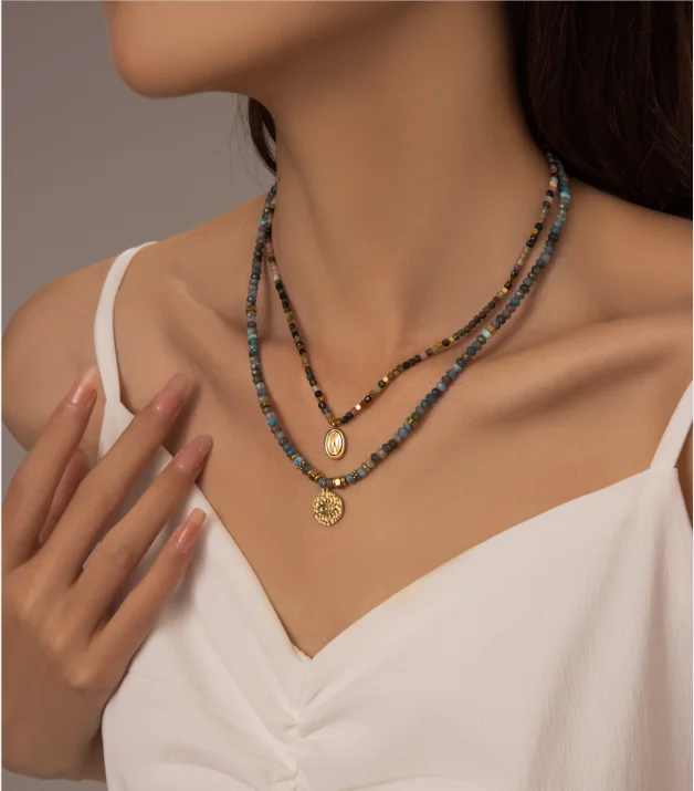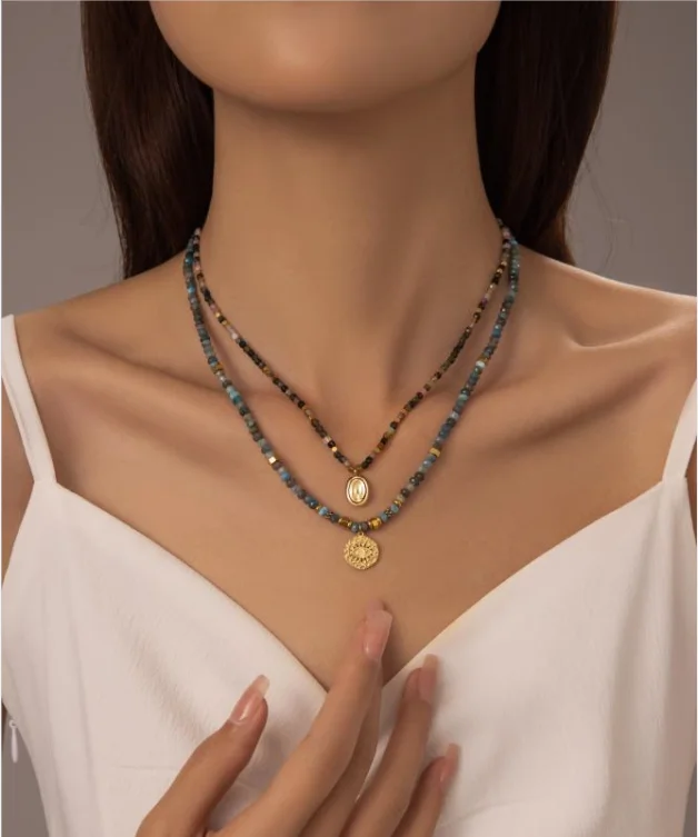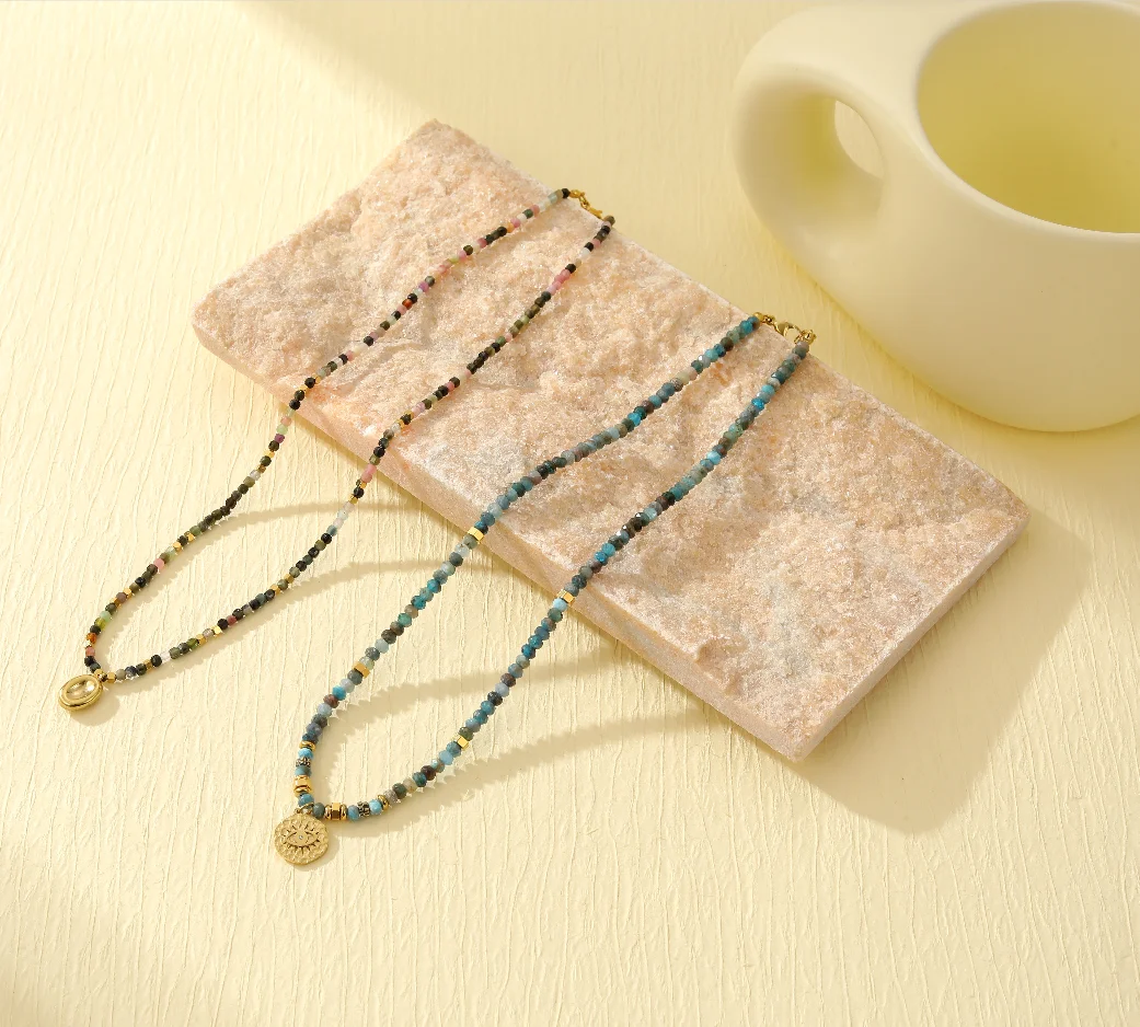 High Quality Stainless Steel Summer Eye Pendant Necklaces Colorful Stones Gold Plating for Party Natural Stone Jewelry Series