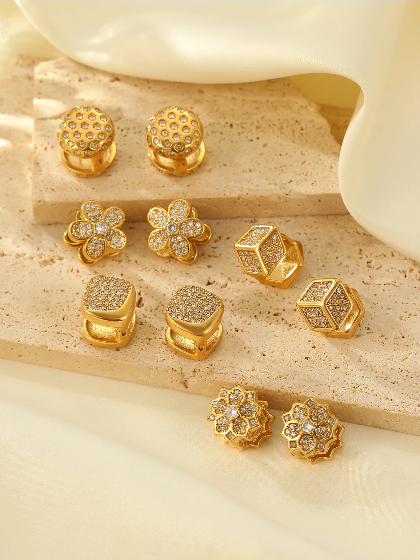 Fashion Jewelry Statement Earrings 18K Gold Plated Stainless Steel Hoop Zircon Earring for Women