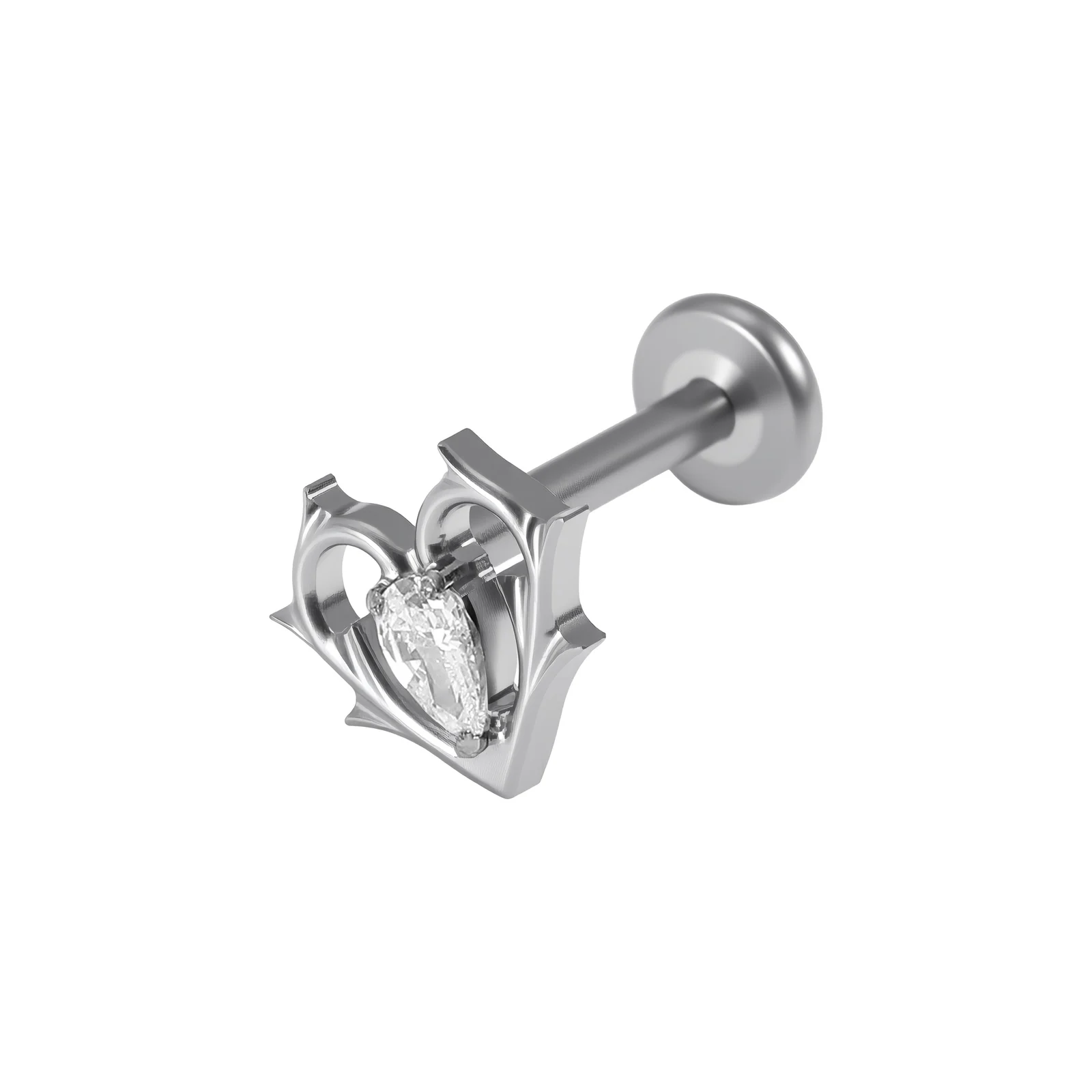 Titanium Inlaid Stone Heart Tooth Head Puncture Stainless Steel Color Wholesale Fashion Piercing Jewelry