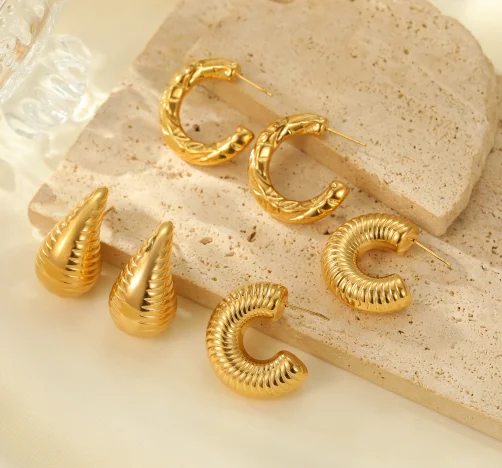 Wholesale Customized 18K Gold Plated Stainless Steel Women's Zircon Hoop Earrings Waterproof Engagement Jewelry