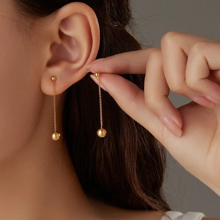18K Gold Plated Stainless Steel Trendy Drop Tassel Earrings for Women