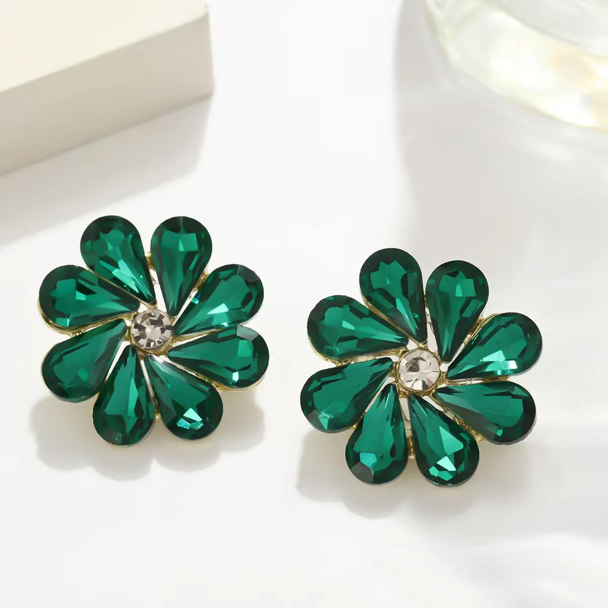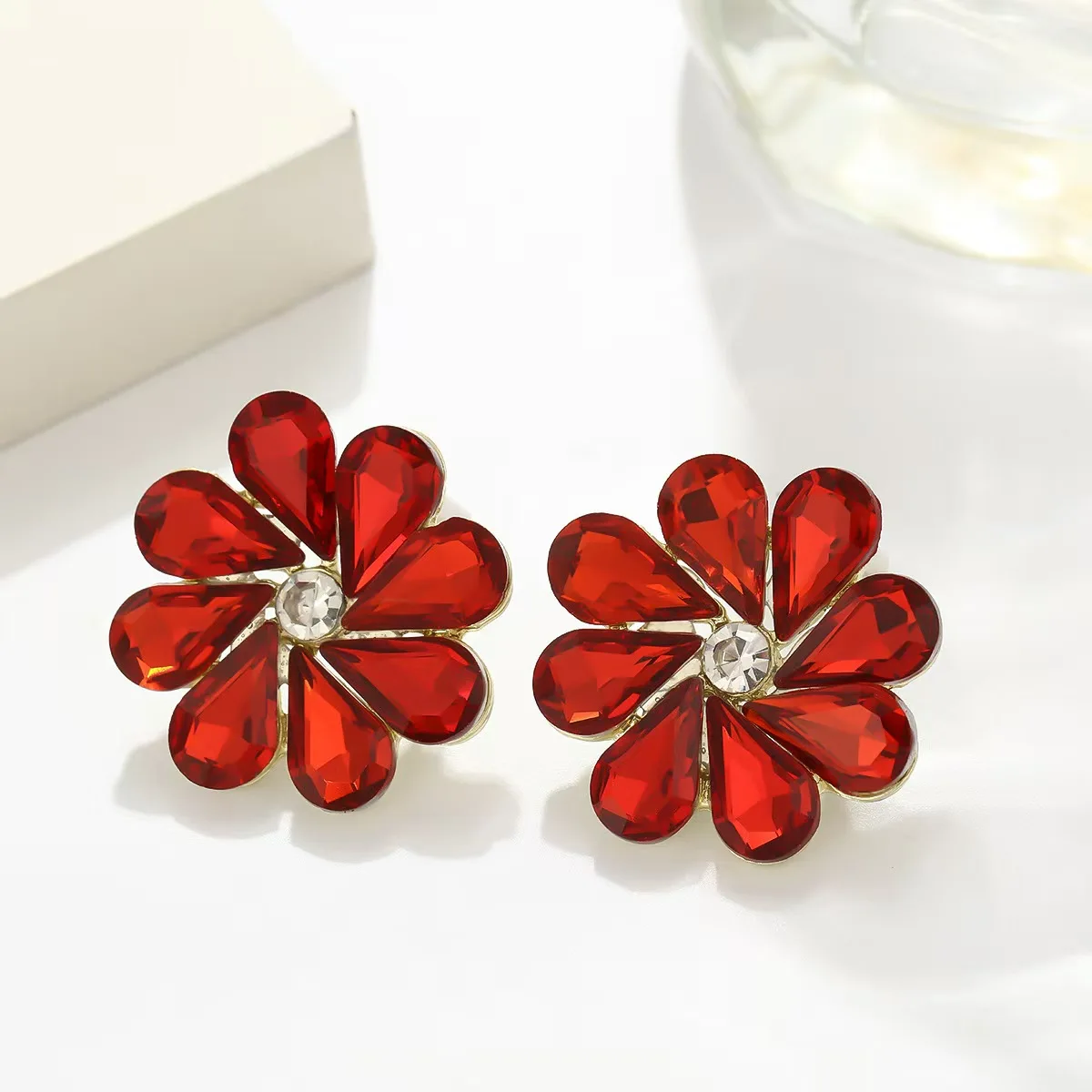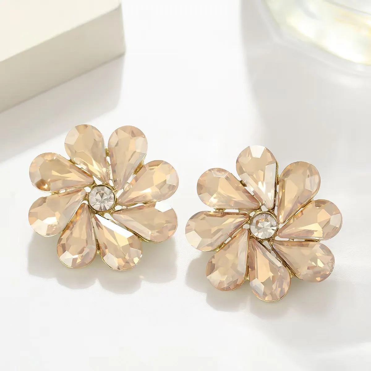 Factory Sweet Diamond Flower Women's Stud Earrings 18K Gold Plated Trendy Gift Fashion Design Daily Matching All-match