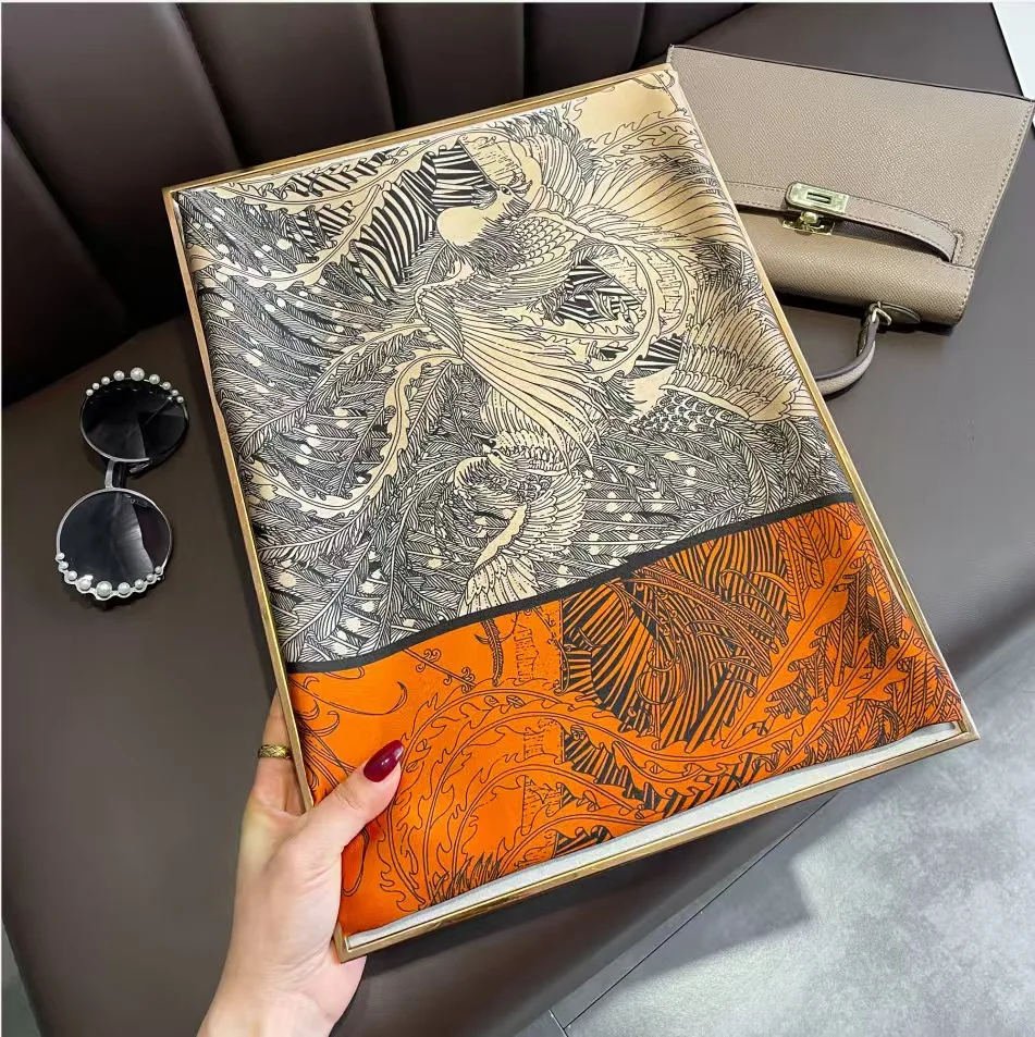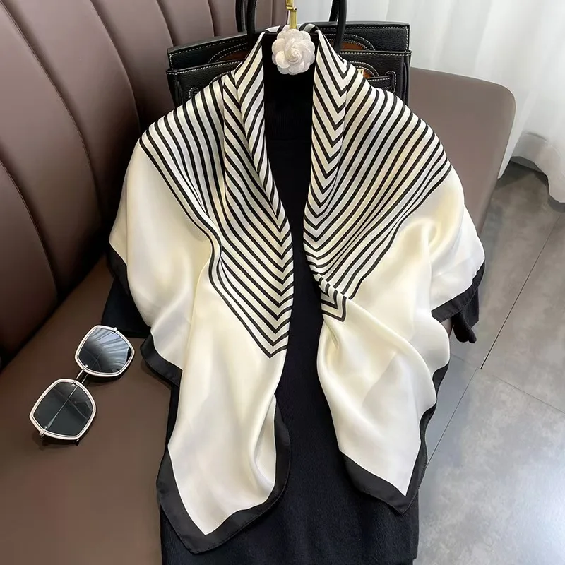 European American Classic Color Lady Temperament Square Silk Scarf Women's Trendy Versatile Neck Handkerchief Jewelry