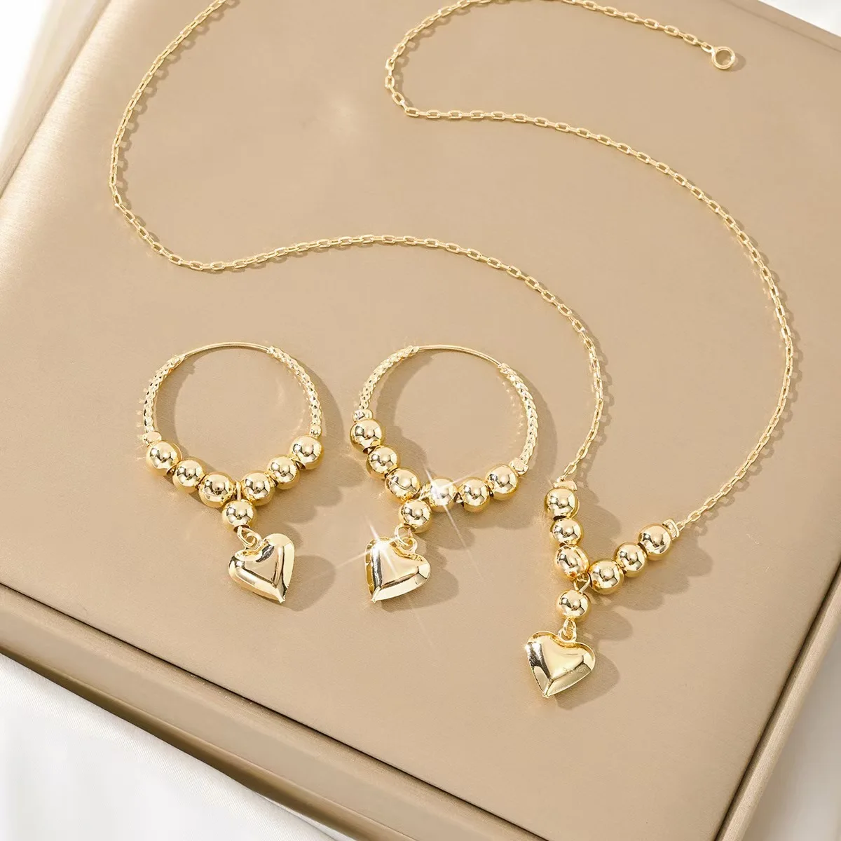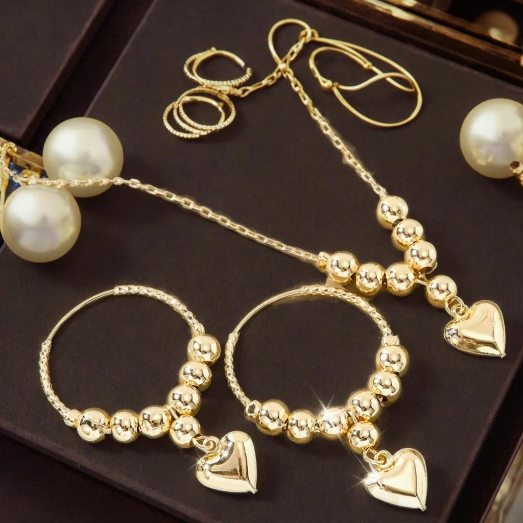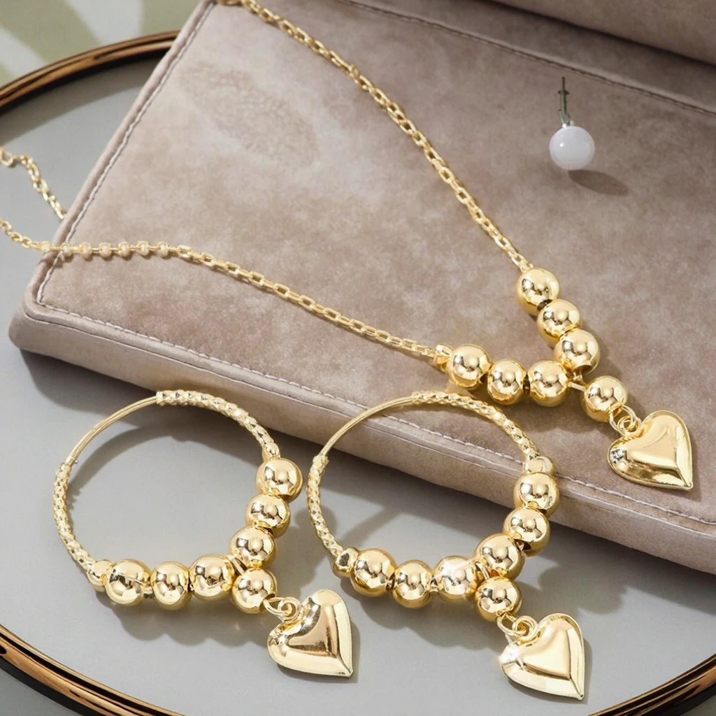 Kinnear Women's 18K Gold Plated Trendy Jewelry Set Bean Design Bulk Wholesale Tassel Heart Hoop Wedding Engagement Party