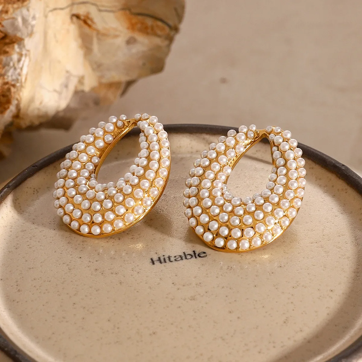 Elegant 18K Gold Plated Stainless Steel Earrings Trendy Geometric & Hollow Imitation Pearl Studs Unisex Wedding Gift Jewelry