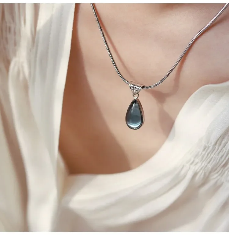 New Arrival Gold Plated Stainless Steel Waterdrop Shaped Pendant Necklace Green Blue Zircon with Snake Chain Waterproof Necklace