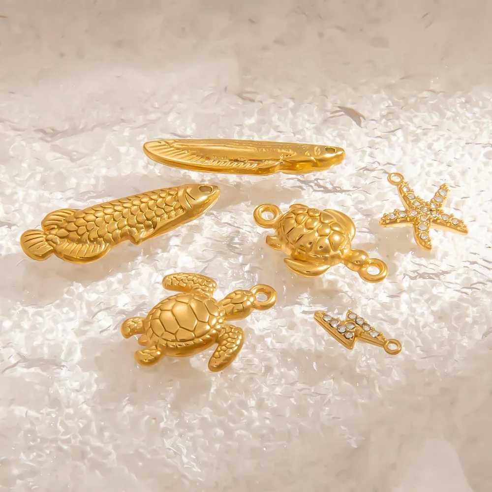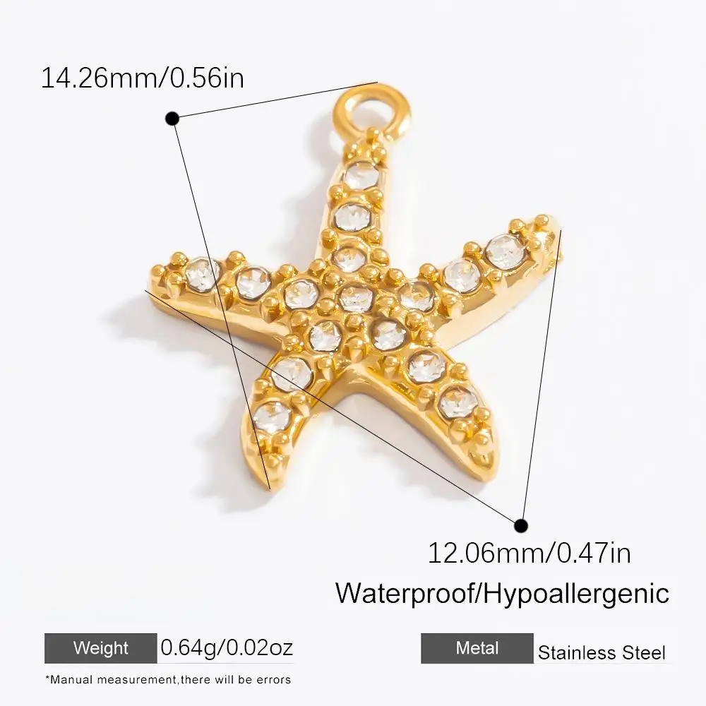 OEM 18K Gold Plated Stainless Steel Turtle Starfish Jewelry Zircon Trinket Pendant for Necklace and Bracelet DIY Accessories