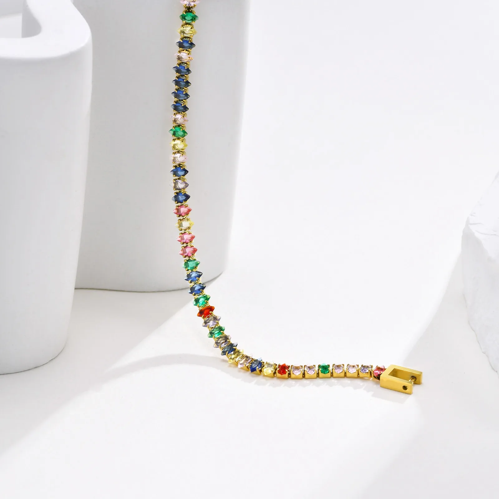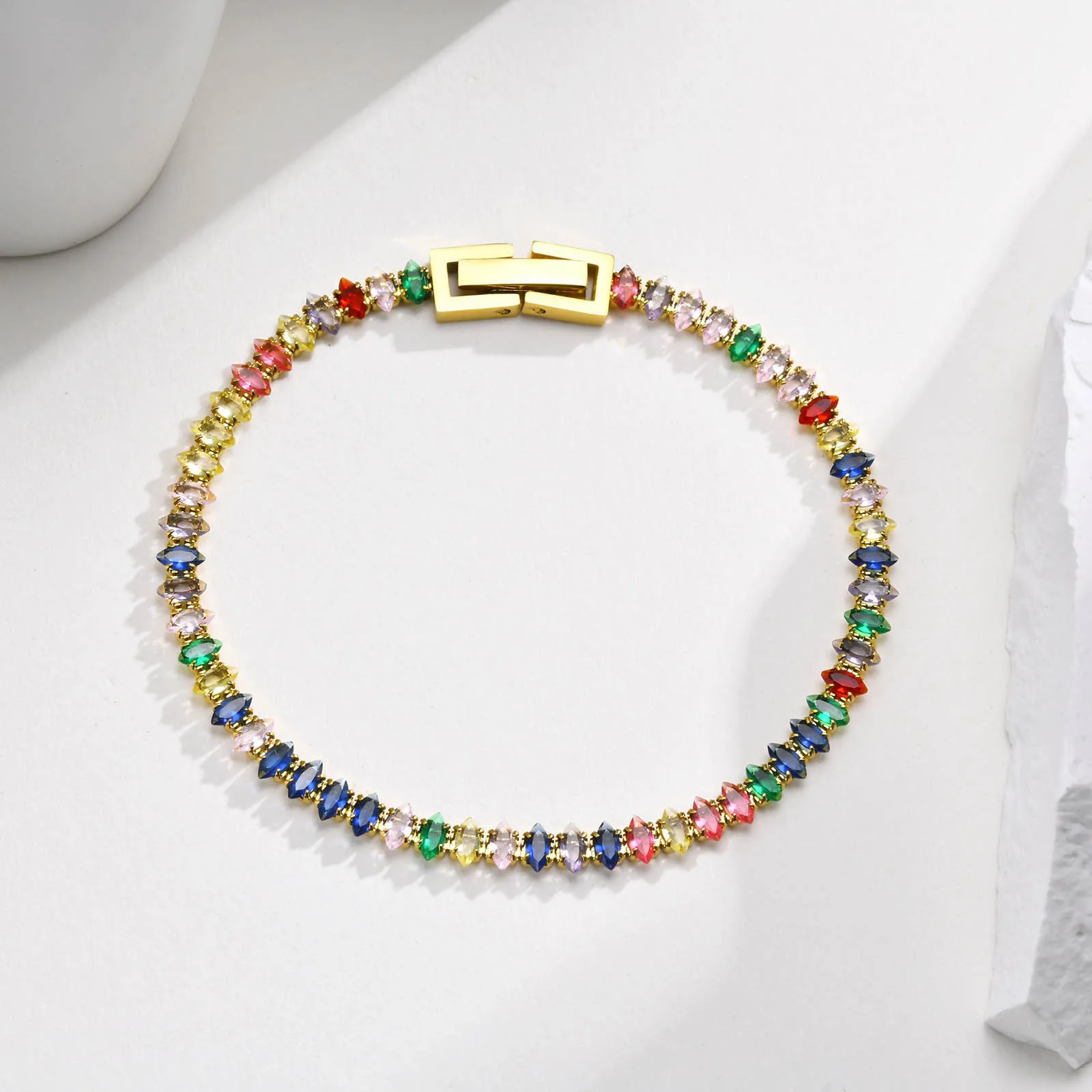 New Arrival 18K Gold Plated Rainbow Beaded Tennis Bracelet Trendy Women's Jewelry with Yellow Blue Pink White Zircon