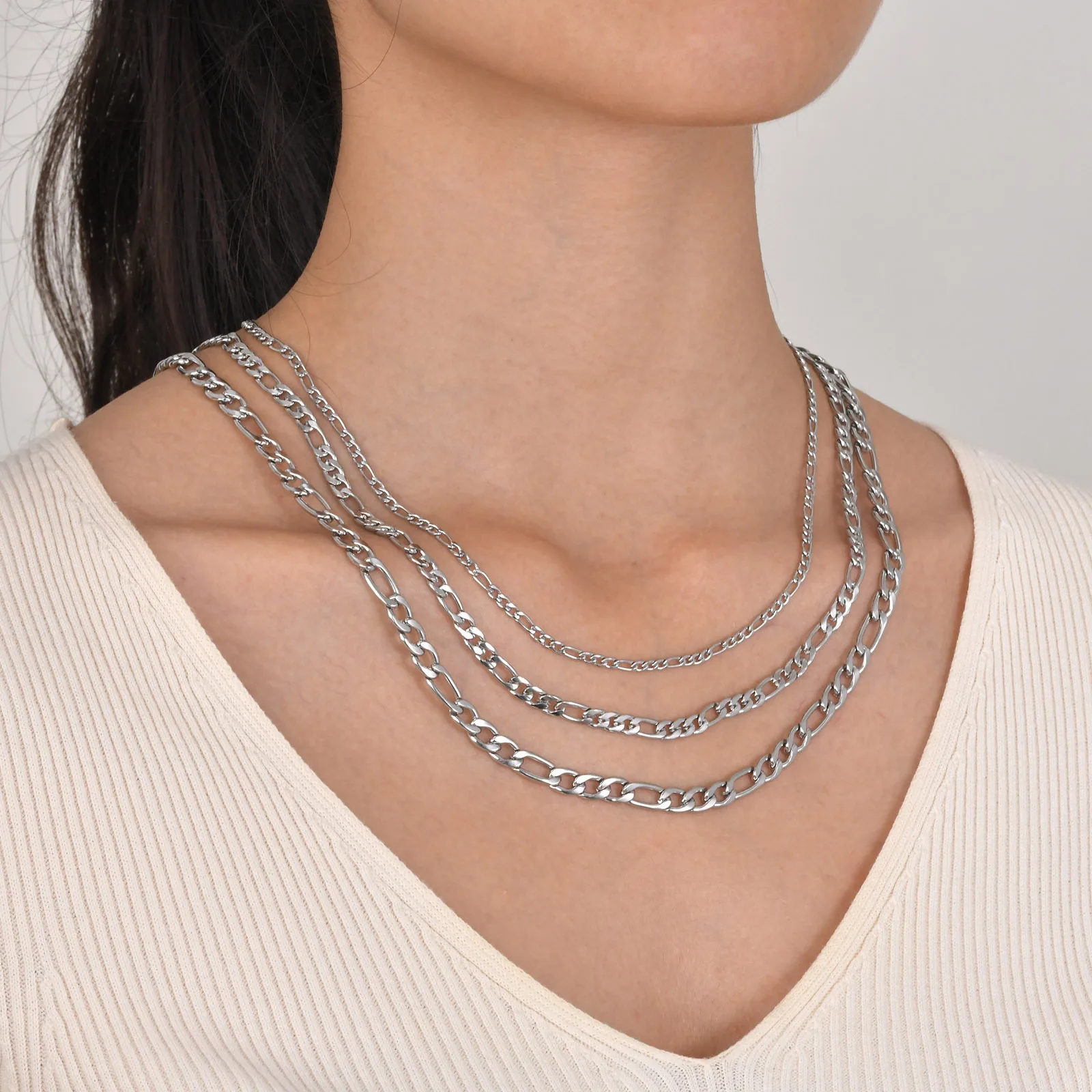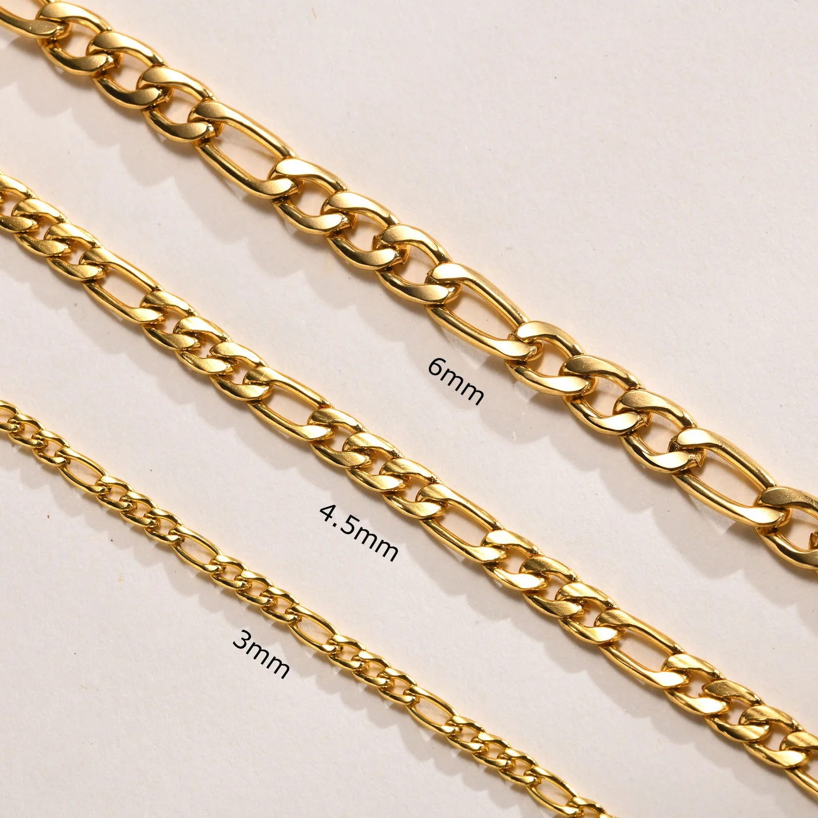 18K Gold Plated Stainless Steel Figaro Chain Necklace for Women Simple Stacked Design Non-Tarnish Jewelry for Girls