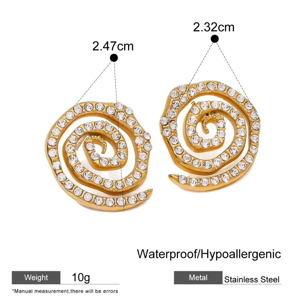 New Arrival Luxury 18K Gold Plated Zircon Earrings Trendy Style Stainless Steel Conch Stud Earrings