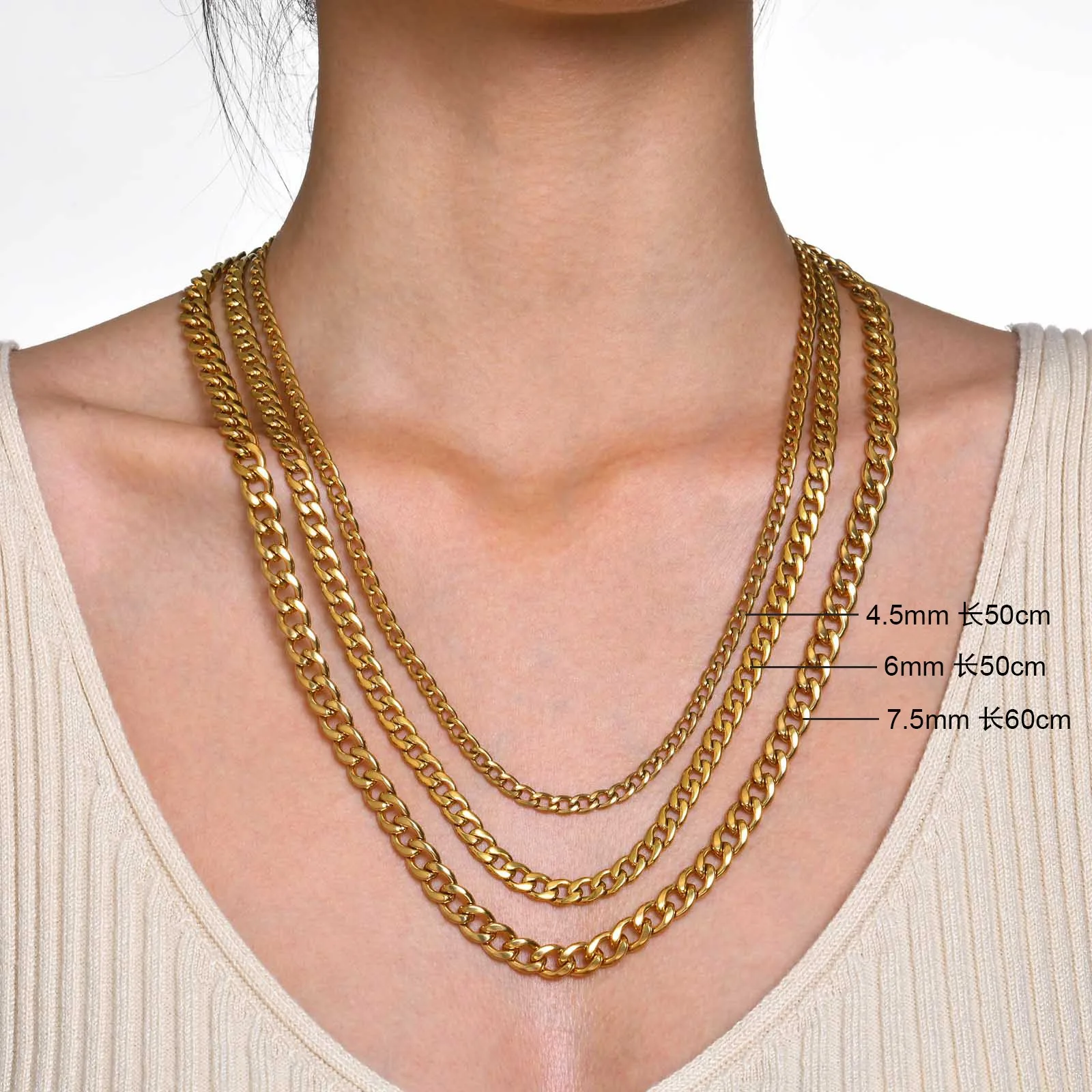 Wholesale High Polish Stainless Steel Cuban Chain Necklace Non Tarnish Jewelry for Men Women Factory Fashion Chains