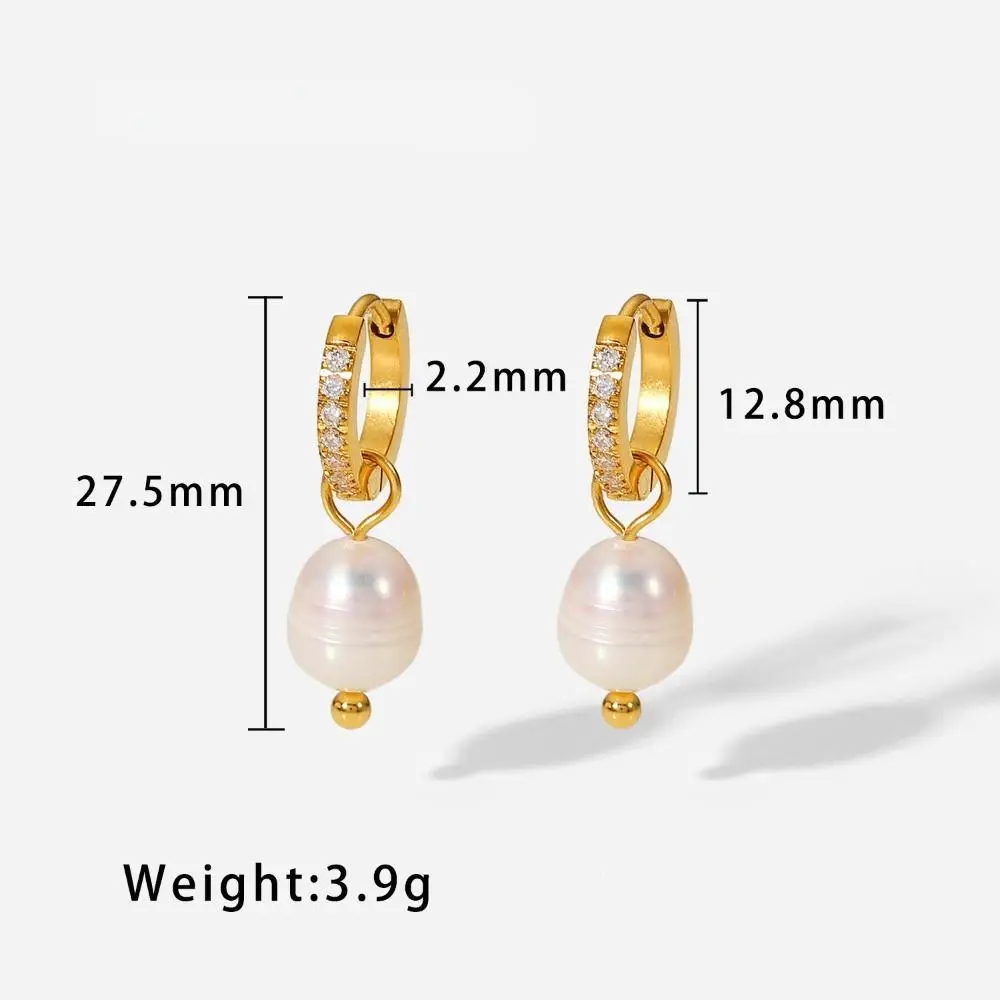 Elegant Women's Stainless Steel Huggie Drop Earrings Zirconia Pave Freshwater Pearl Fashion Jewelry for Gifts