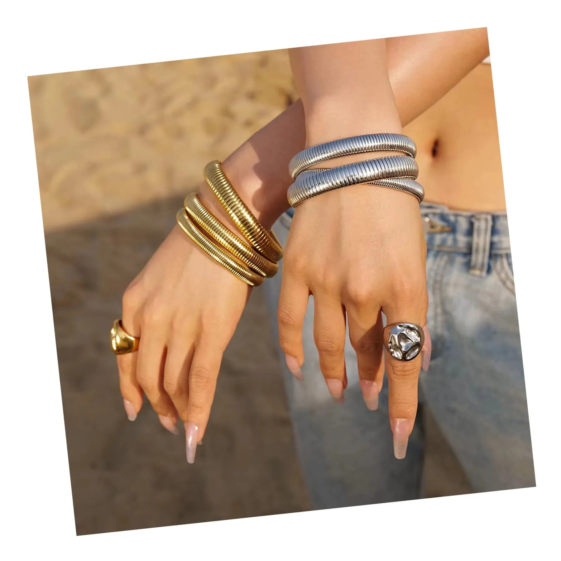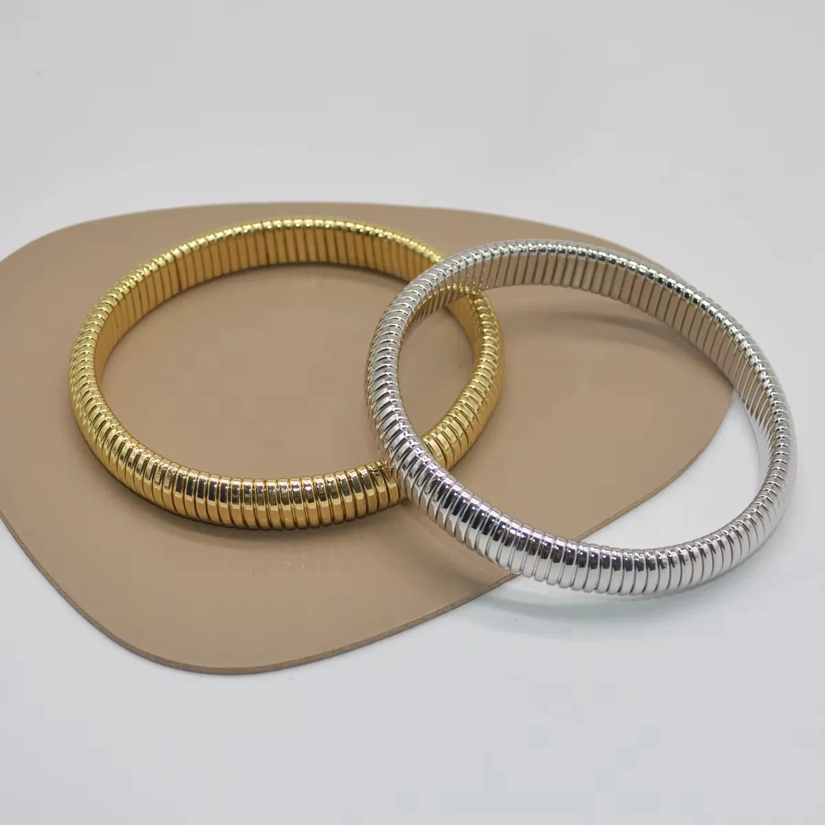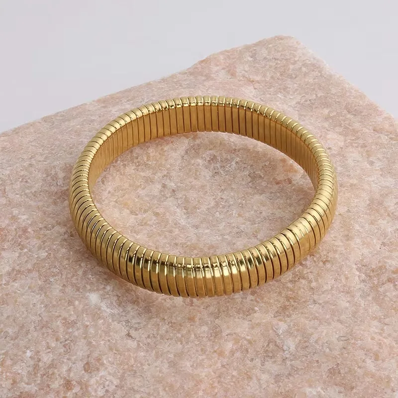 OEM Vintage Gold Plated Stainless Steel Snake Bone Striped Elastic Bracelet Fashionable Chunky Bracelet for Couples Trendy Style