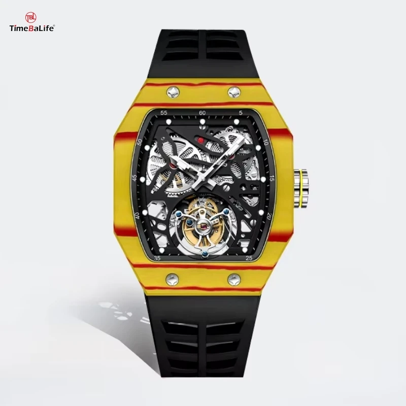 Manufacturer OEM Luxury Men's Mechanical Watch Carbon Fiber Skeleton Luminous Personalized Fully Automatic True Tourbillon Watch